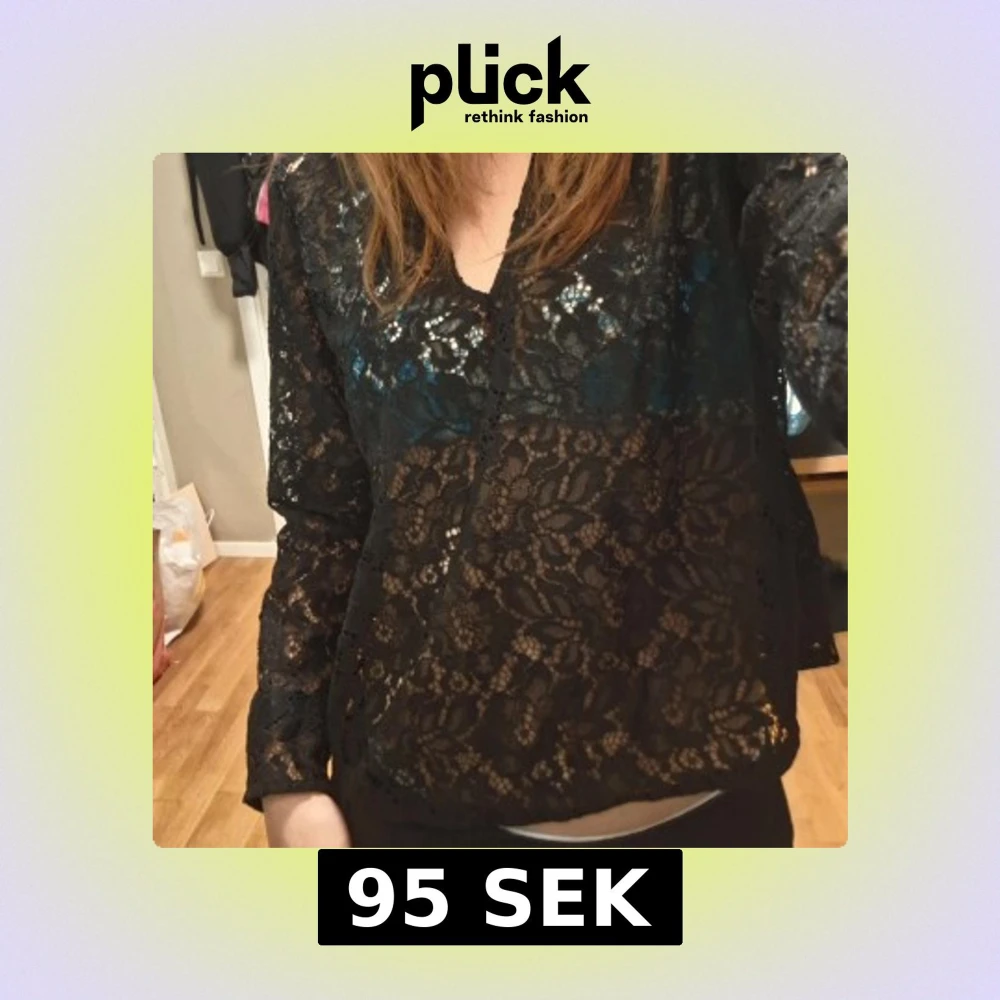 Säljer en svart blus från Stockh LM i storlek S. Blusen är helt i spets med blommigt mönster, v-ringning och långa ärmar. I bra skick, utan defekter!