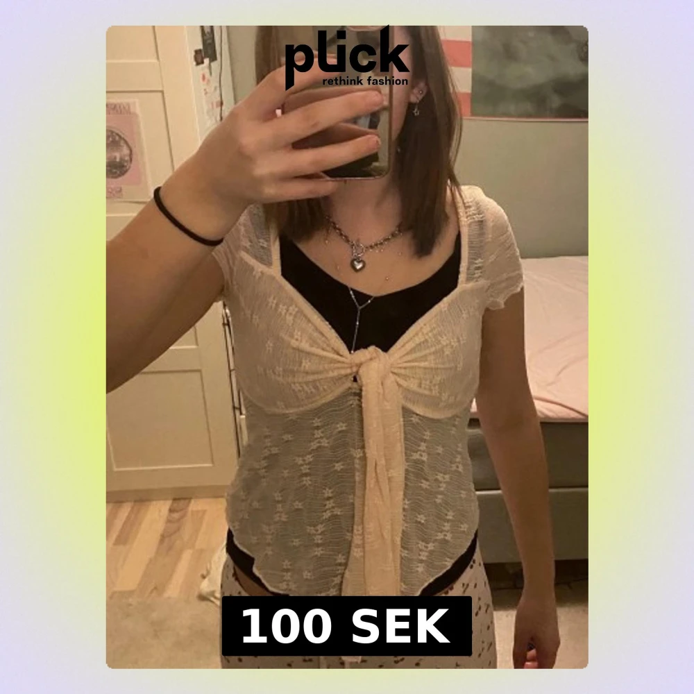 Säljer en superfin ljusrosa blus i transparent material med blommigt mönster. Toppen har korta ärmar och en stor knytning framtill som ger en söt och trendig look. Perfekt att styla över ett linne eller topp. Materialet är lätt och luftigt.