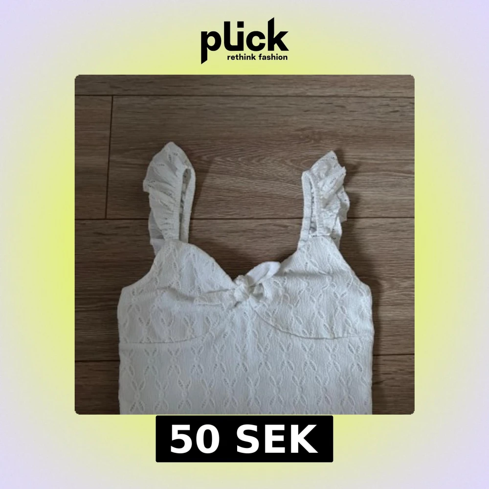 Söt vit topp med spetsdetaljer och volangprydda axelband. Toppen har en knytning framtill och är perfekt för sommarens varma dagar. Den har en elastisk baksida för en bekväm passform.