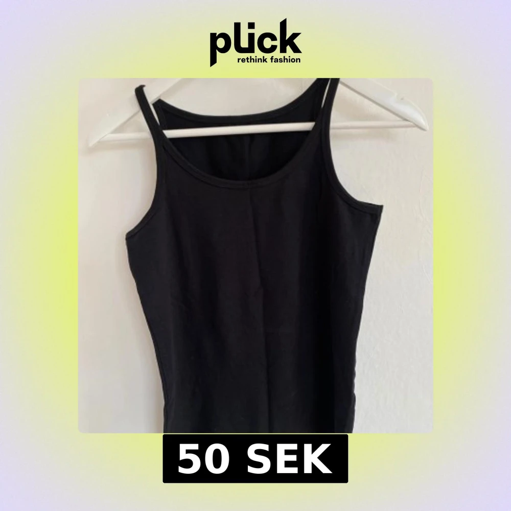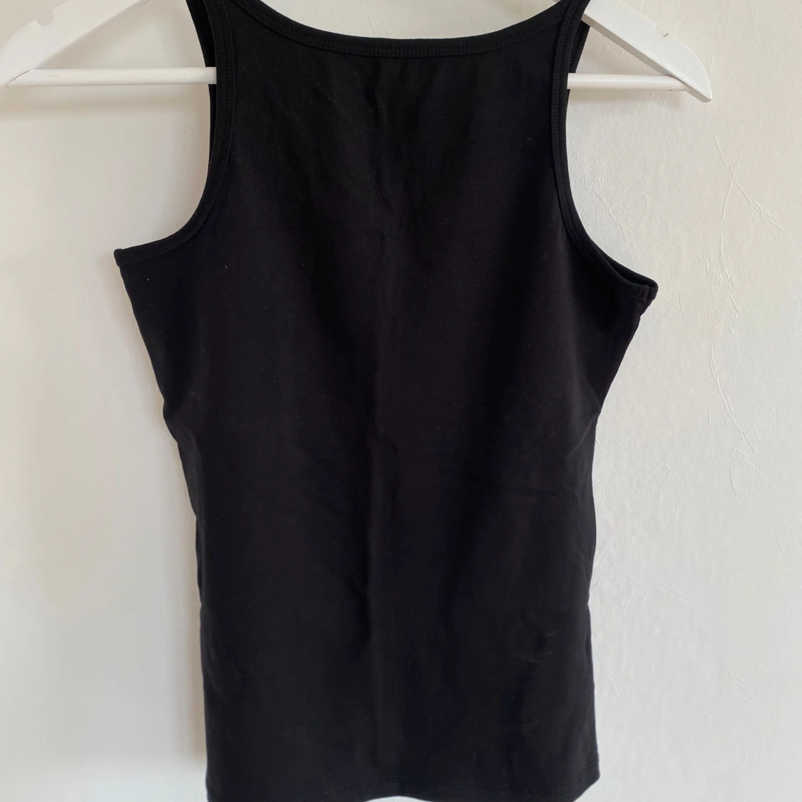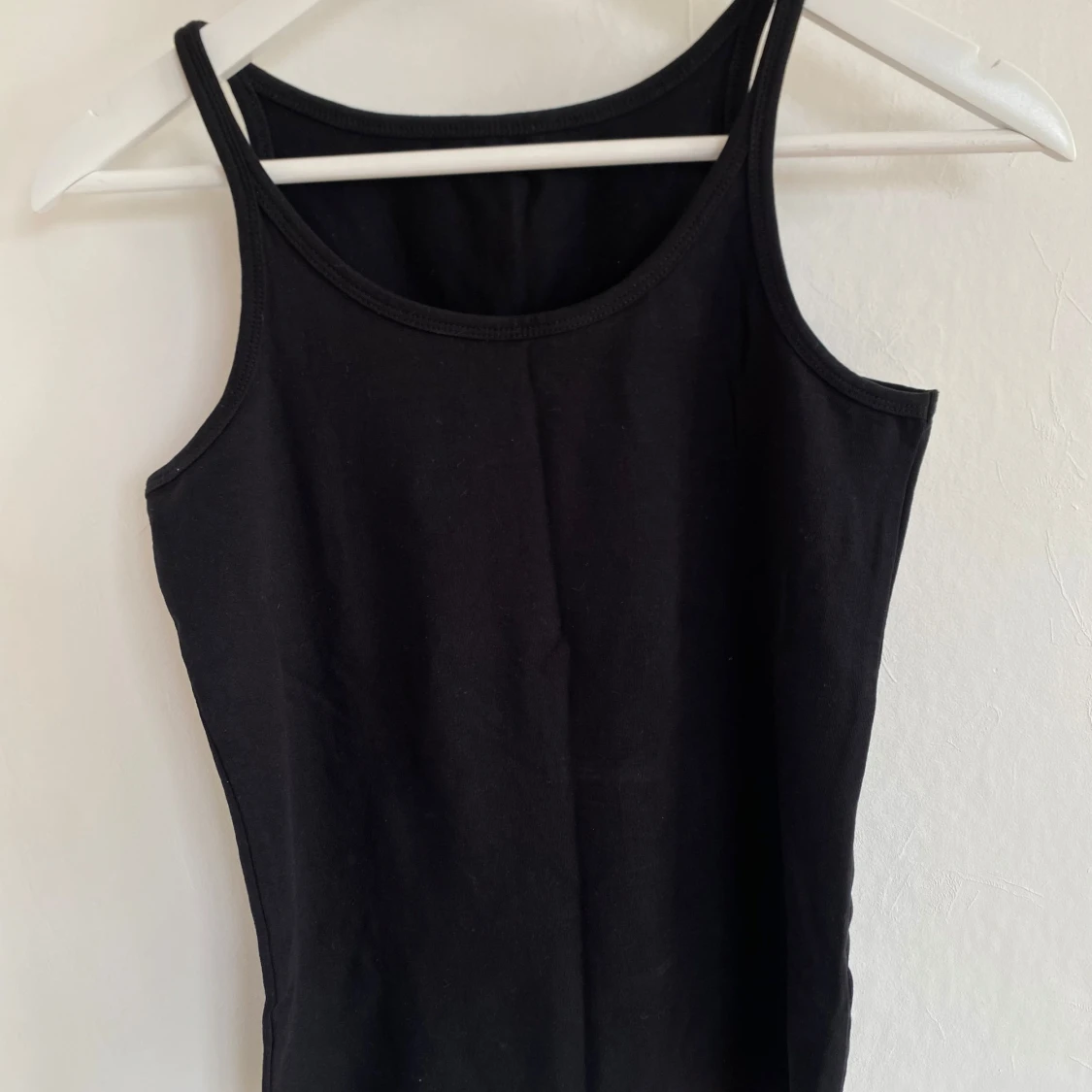 Svart basic linnetopp med smala axelband och rundad halsringning. Perfekt att styla lager på lager eller bära som den är. Gjord i mjuk bomull som känns skön mot huden.