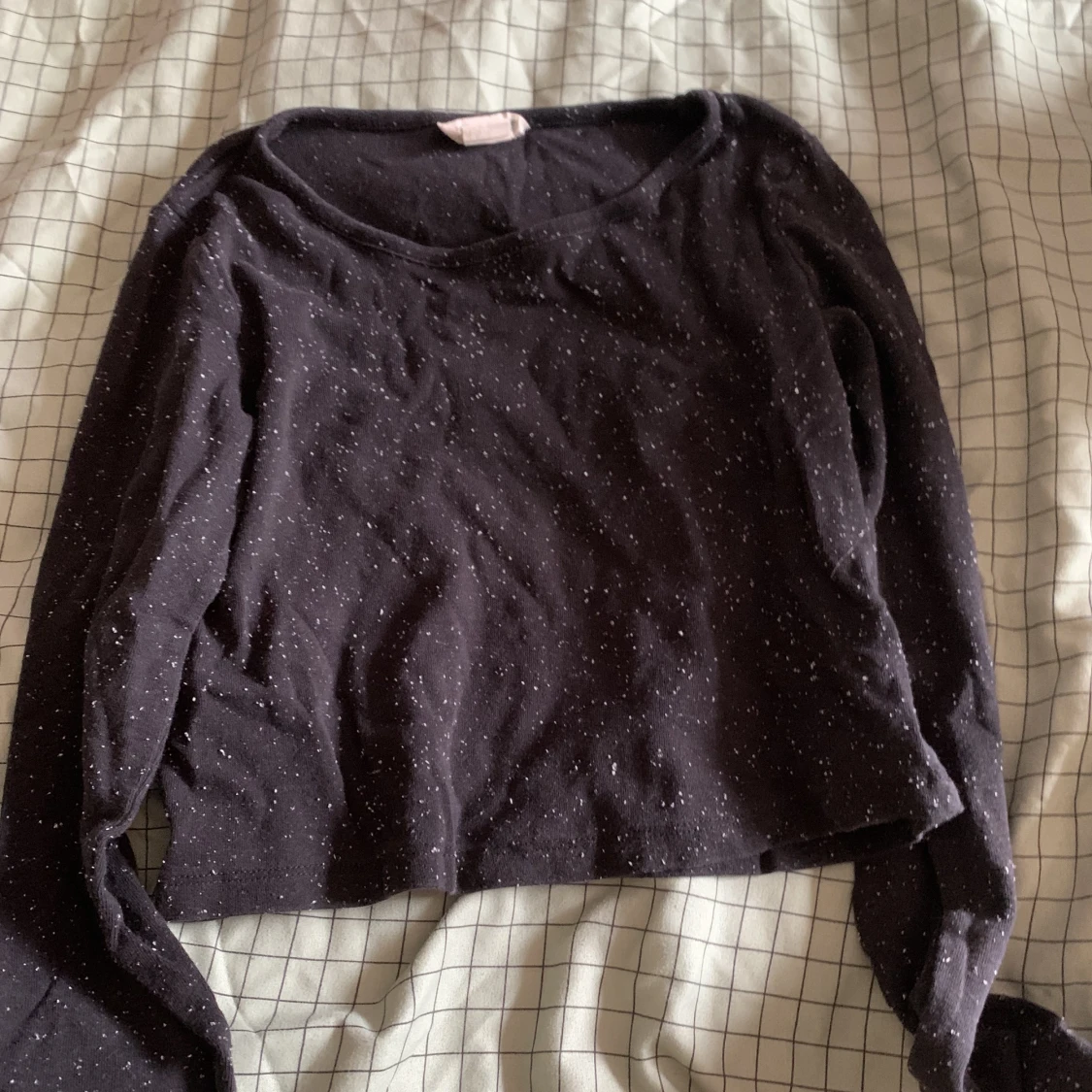 Jättesöt lite kortare svart tröja med små vita prickar i storlek 10-12/146-152! Tryck på köp nu ifall intresserad 💕