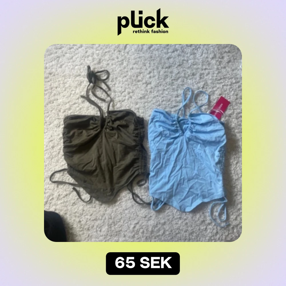 Båda är från shein. Den blåa är helt oanvänd, prislapp på. Banden knyts runt halsen. 65kr styck.