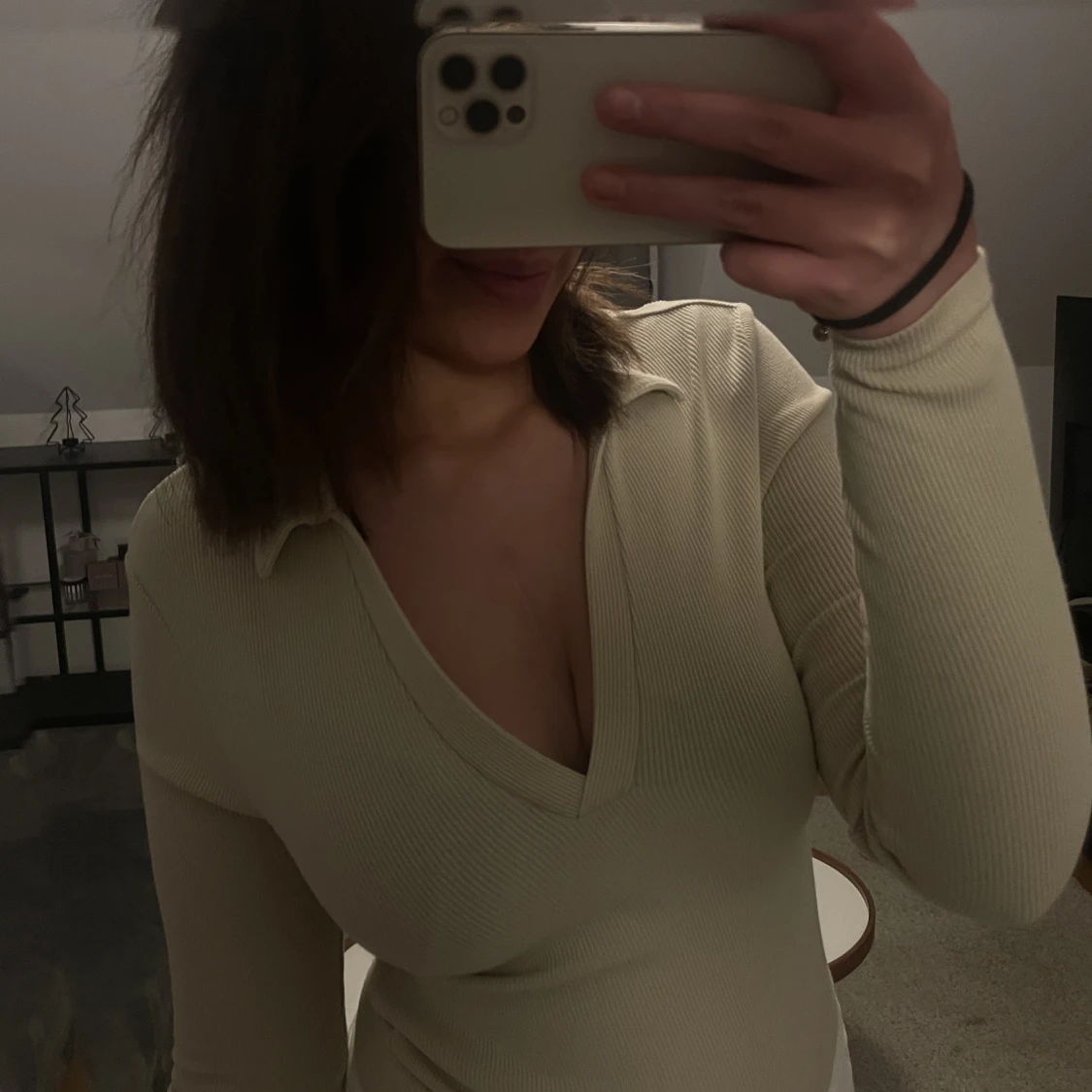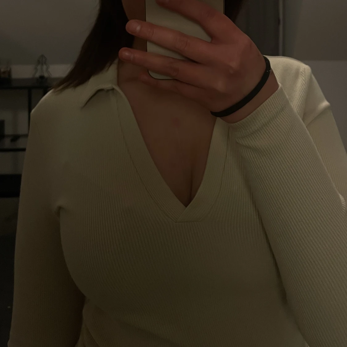 superfin V-ringad topp med krage från stradivarius som inte kommer till användning längre! Storlek M men passar även S. Super skönt material och knappt använd! Skriv om du har frågor eller annat🥰