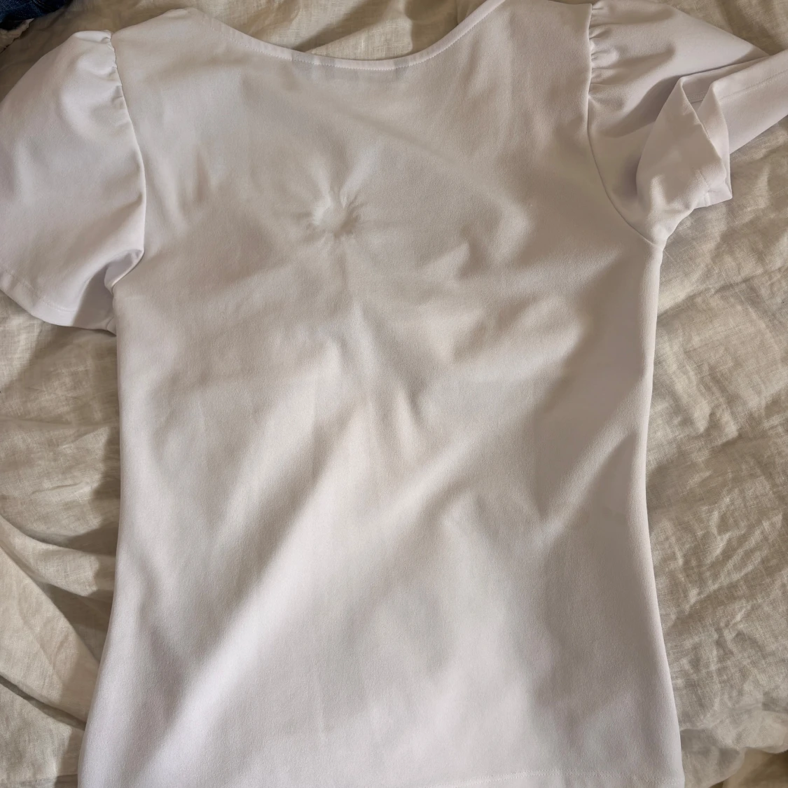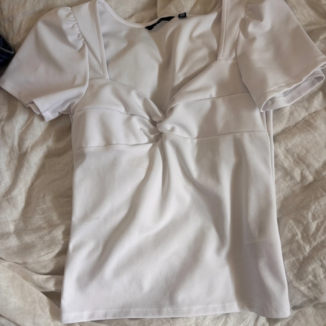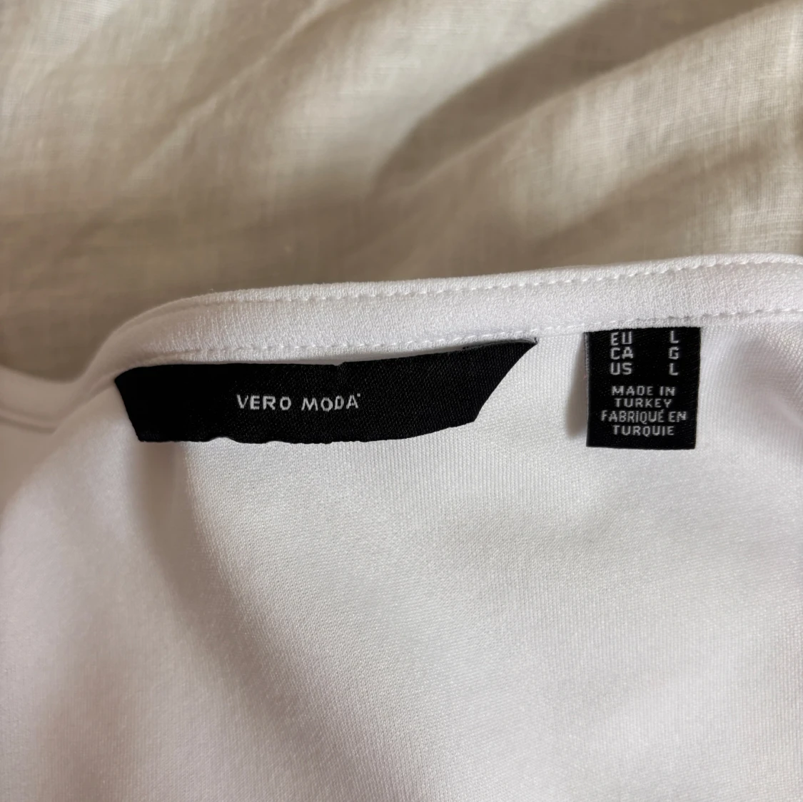 Jag säljer en vit topp från vero Moda i storlek L, men skulle även säga att den passar S/M.