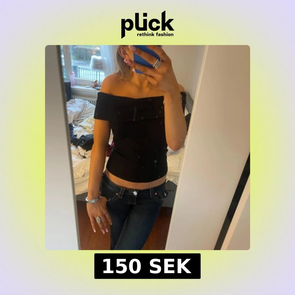 Snygg svart offshoulder topp som är perfekt för en stilren look. Toppen har en tight passform och är tillverkad i ett mjukt material som sitter bekvämt. Perfekt för att klä upp eller ner beroende på tillfälle.