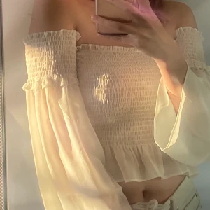 Lätt och söt topp som sitter bra. Man får med luftiga ärmar som inte är fast, så man kan välja ifall man vill gå med eller utan dem. Helt okej stretchig. Nypris 99kr