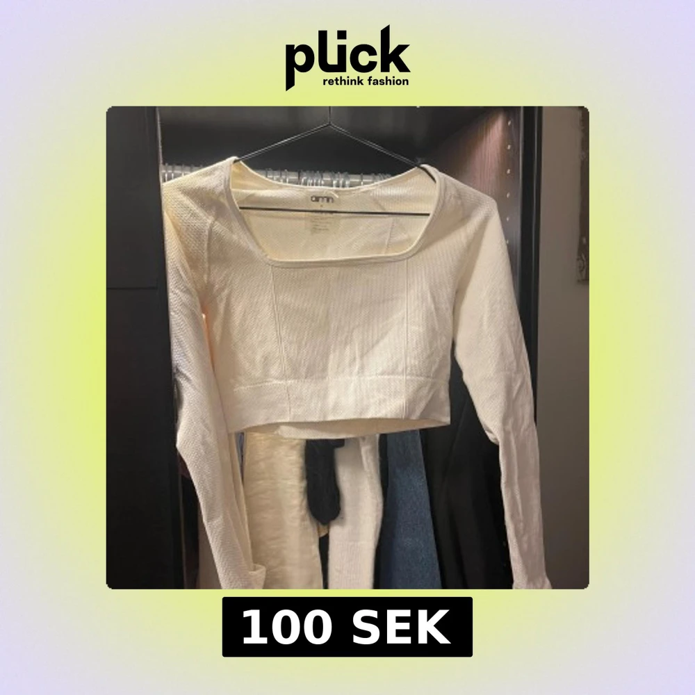 Säljer en vit croppad långärmad topp från Aim'n med fyrkantig ringning. Funkar både till träning och till vardags!