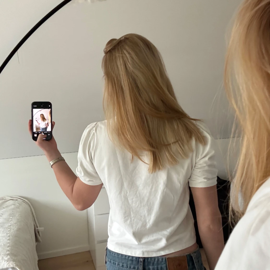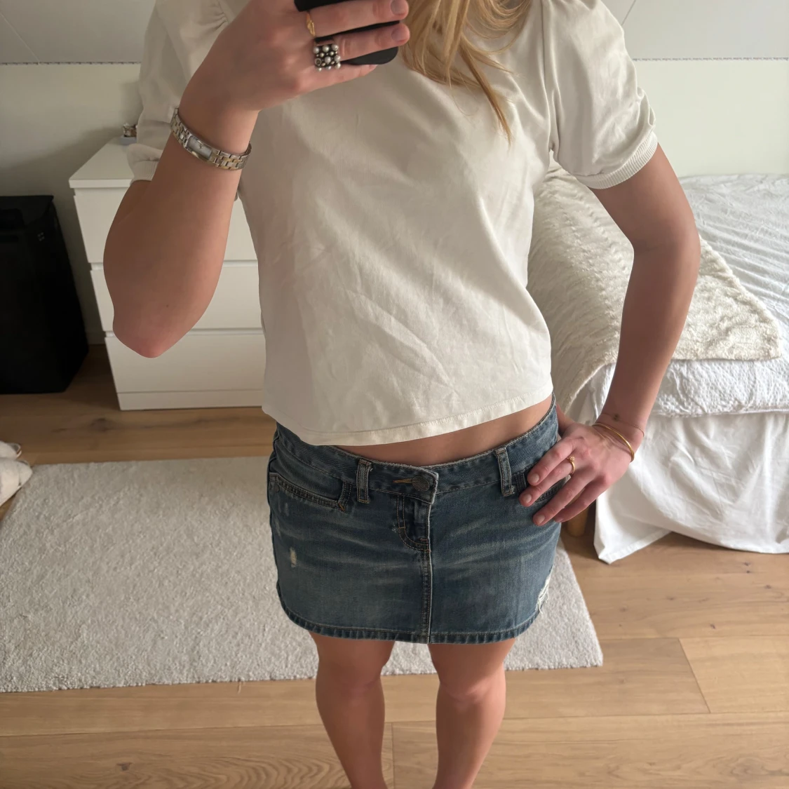 Säljer en vit topp med små puff ärmar från NAKD, fin till sommaren. Storlek S men passar även XS och M skulle jag säga❤️