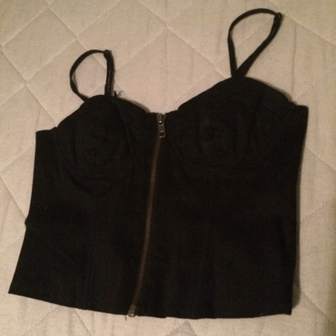 En snygg svart sommar topp med gylf där fram! Tyvärr så är en av snörena på axeln av men man eller jag kan lätt fixa det!
