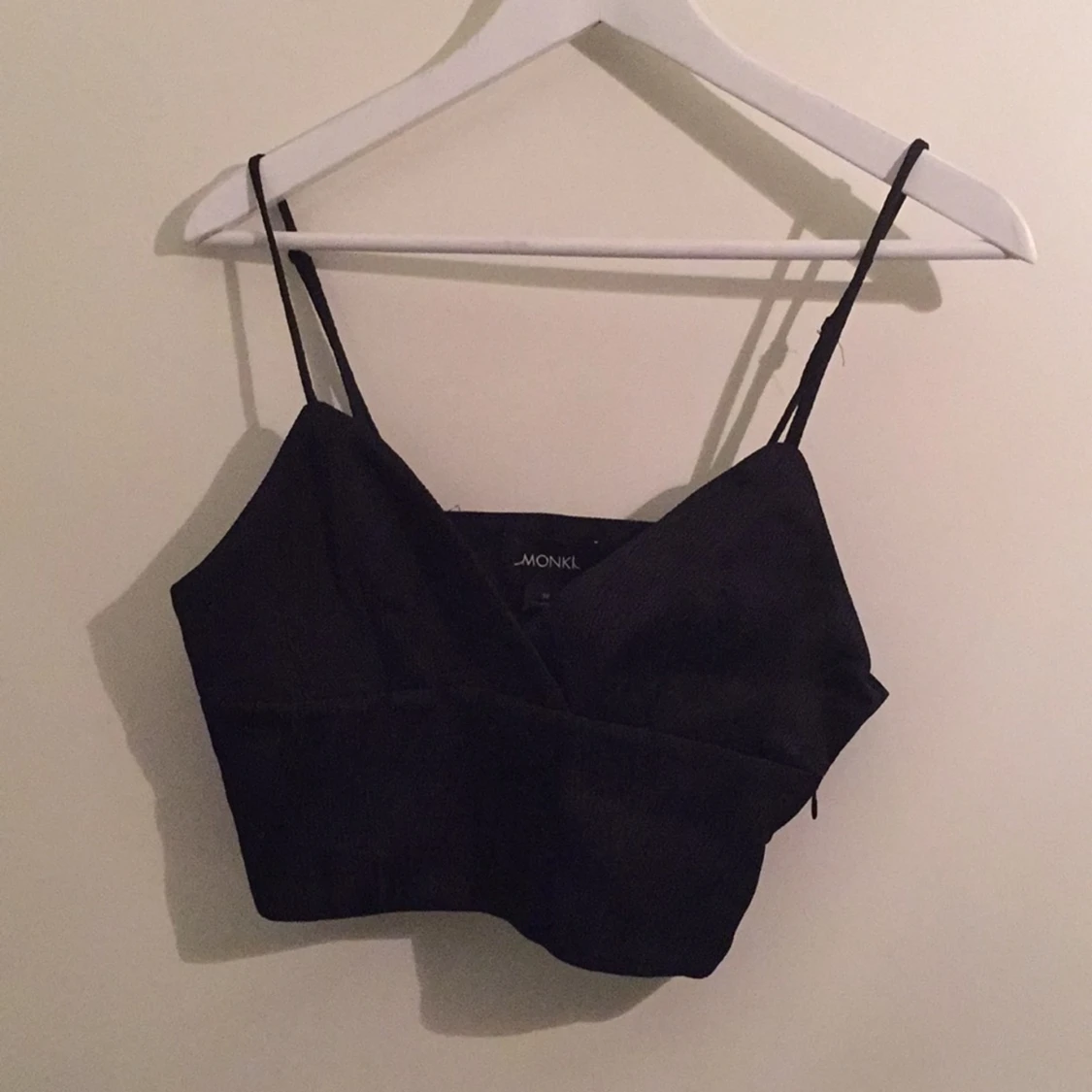 Snygg topp från Monki, väldigt bra skick. Stängs på sidan med dragkedja. Reglerbara axelband. Frakt 25