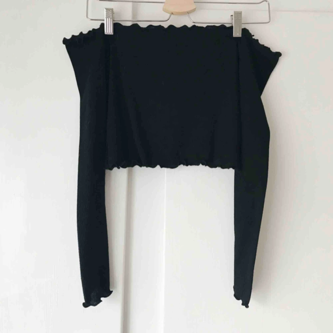 Svart offsoulder topp från PrettyLittleThing. Använd några gånger. Frakt tillkommer med 15 kr. Betalning med swish