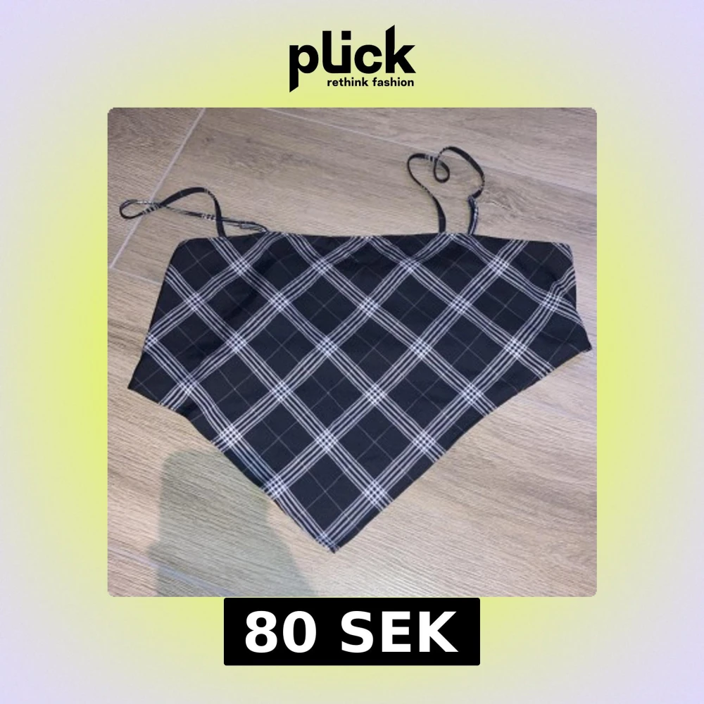 Säljer en svart och vit rutig croppad linnetopp från H&M Divided. Toppen har smala axelband och ett smockat parti på baksidan för extra komfort. Perfekt för sommaren och enkel att matcha med jeans eller kjol.