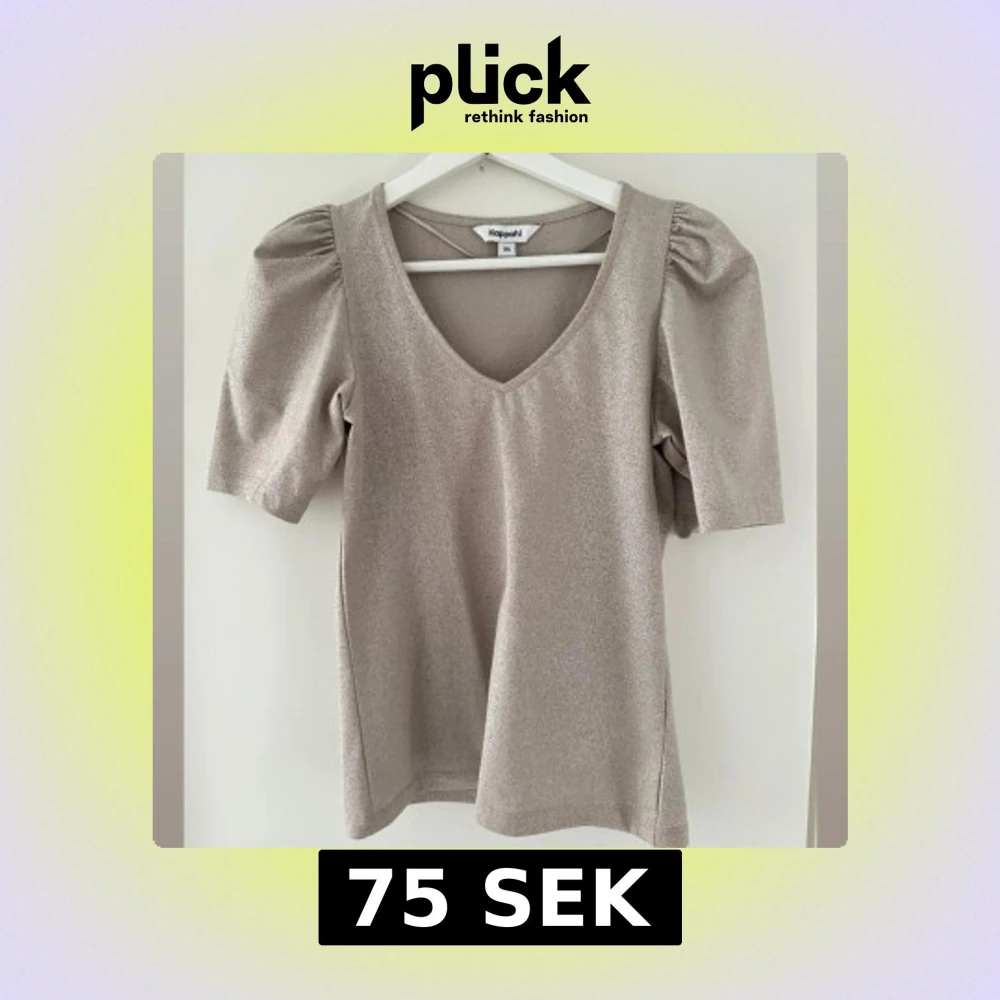 Champagnefärgad glittrig topp från Kappahl med v-ringning och puffade korta ärmar. Toppen är så fin och i nästintill nyskick!