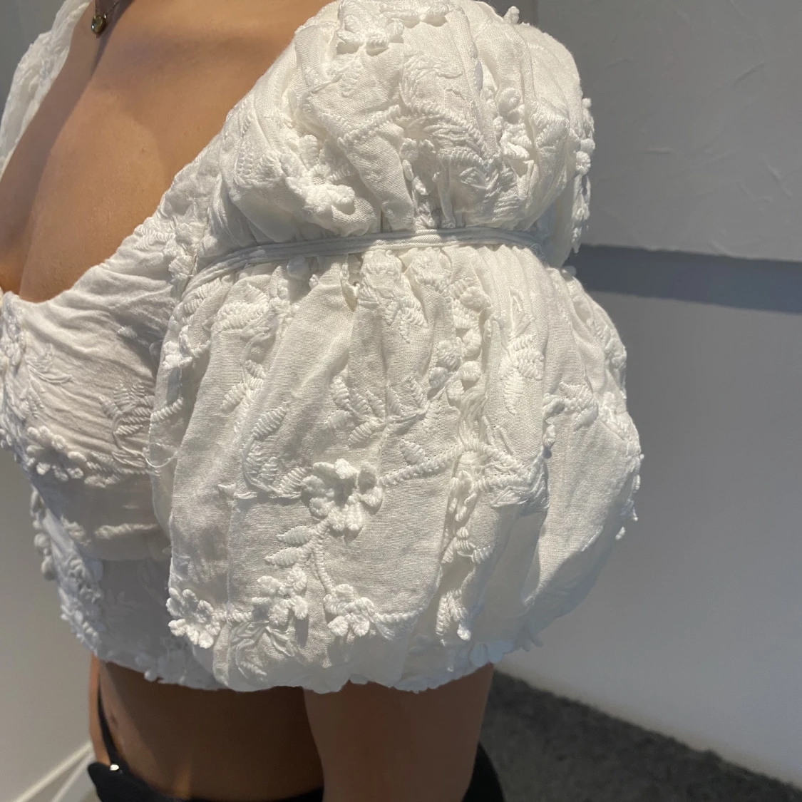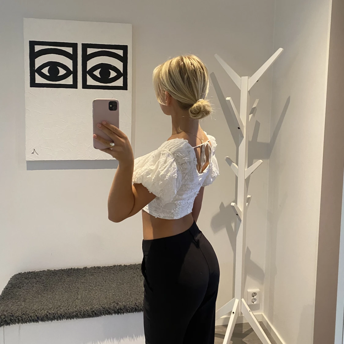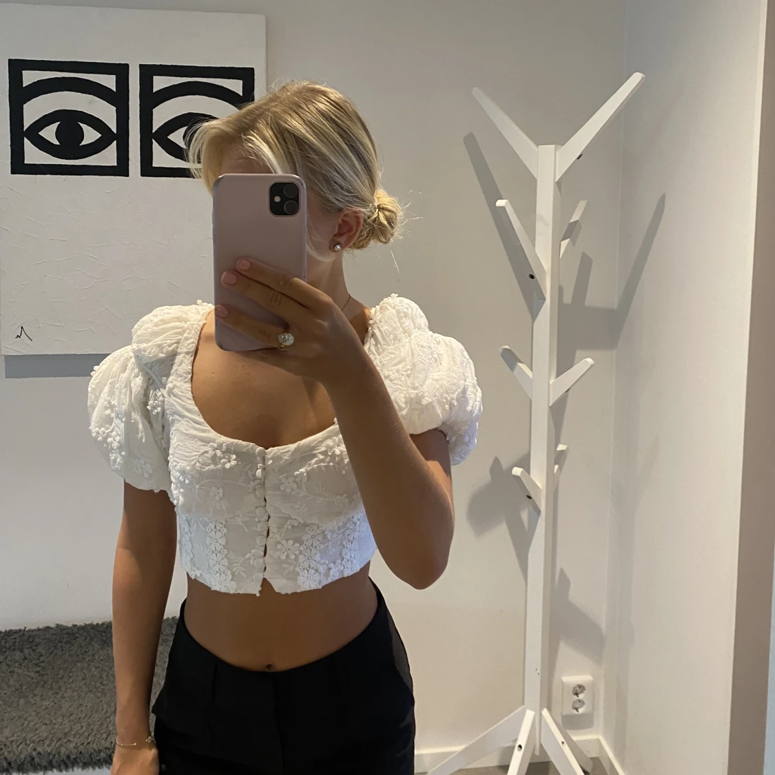 Säljer denna söta topp från nakd då den är lite för liten för mig. Använd 2 gånger så den är i mycket fint skick. Den har knappar i fram som man knäpper. Blommigt mönster. Puffärmar och en knytning bak i ryggen. Storlek 34.
