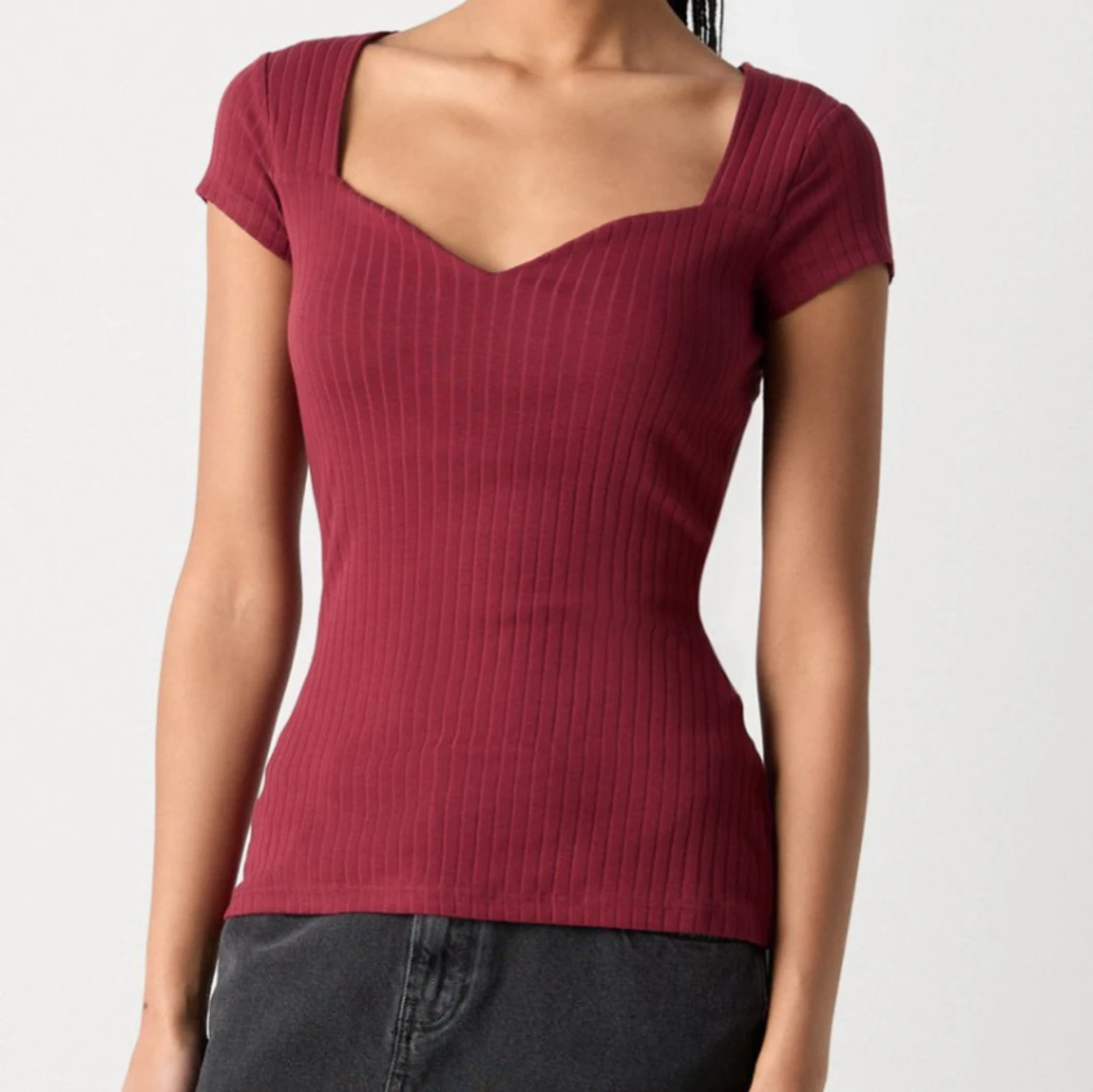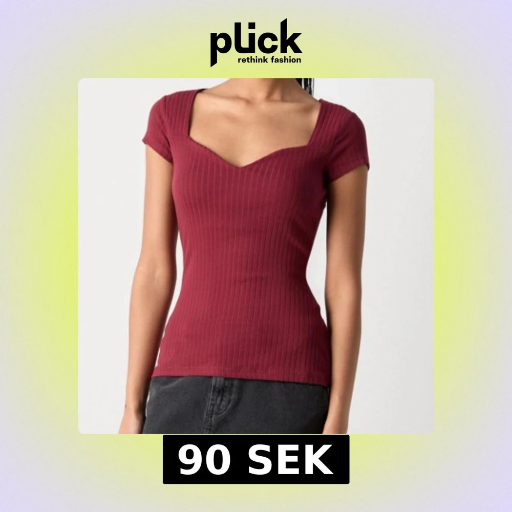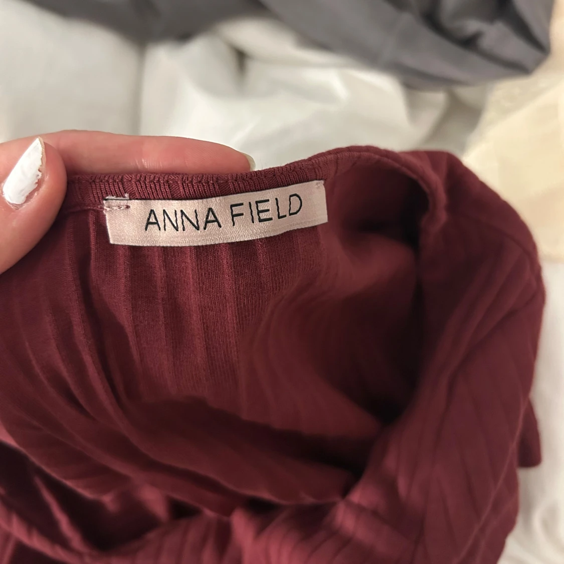 Supersnygg vinröd topp från Anna Field med ribbad struktur och v-ringad urringning.