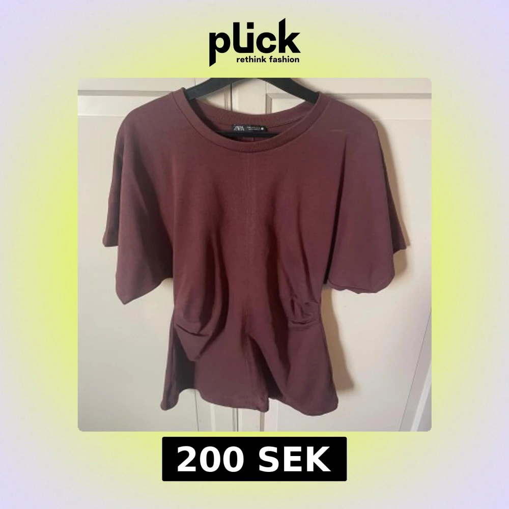 Vinröd topp, t-shirt med drapering på sidan, använd en gång
