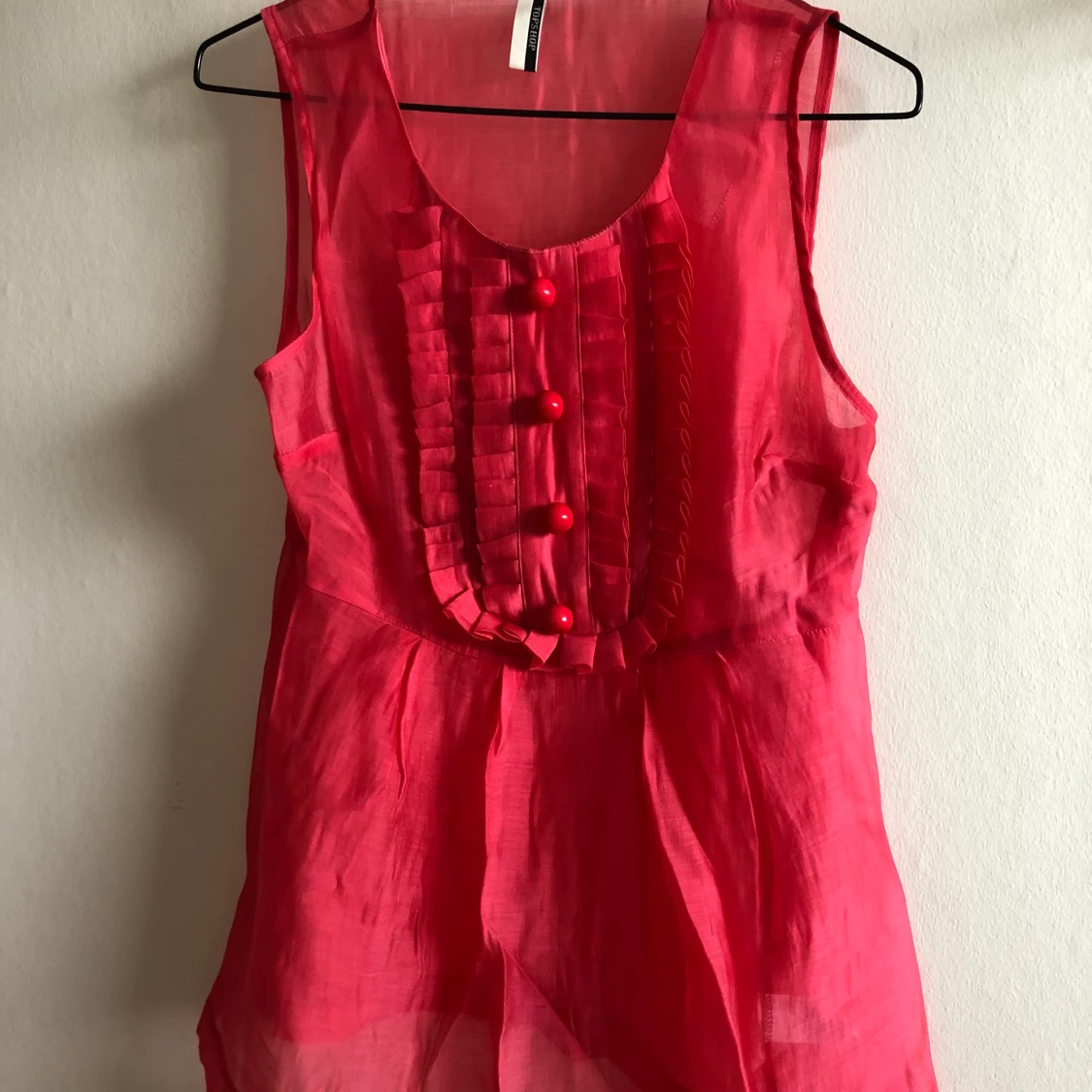 Rosa topp med dragkedja i sidan. Den har gått upp lite vid sidan och är lagad. Kan skicka närmare bilder vid intresse. Kan hämtas i Malmö, är lite osäker på exakt fraktkostnad.