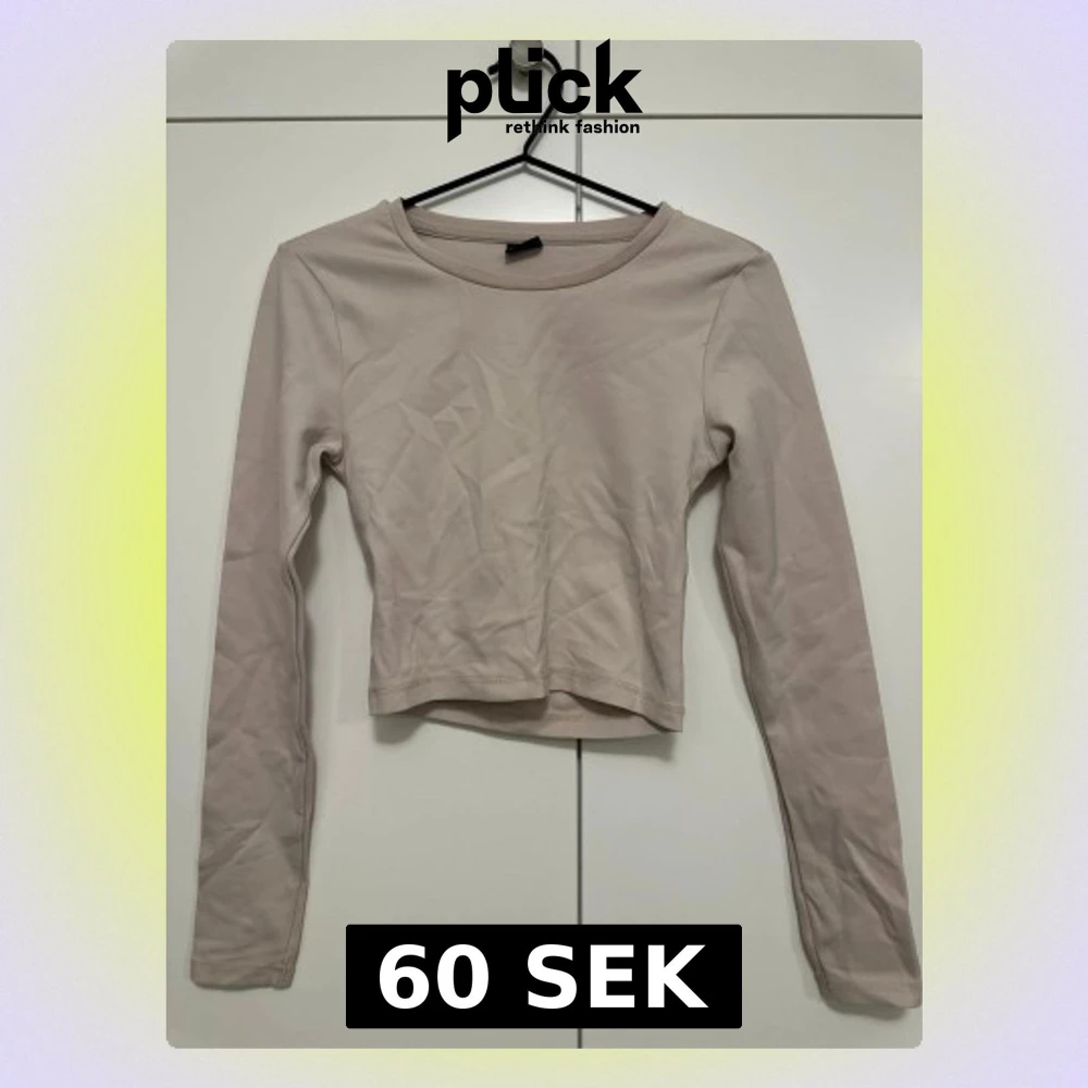Beige croppad träningstopp med lång ärm från Gina Tricot. Stretchigt och bekvämt material, perfekt för gym, yoga eller promenader. Snygg cut-out i ryggen.