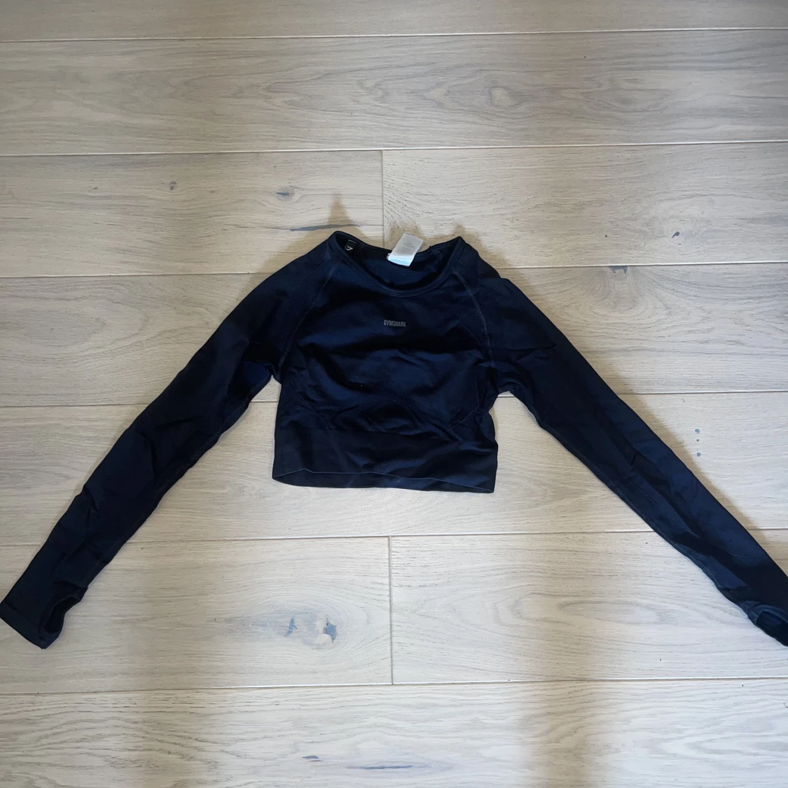 Oanvänd svart crop top från gymshark i storlek xs. Ordinarie pris 449 kr.