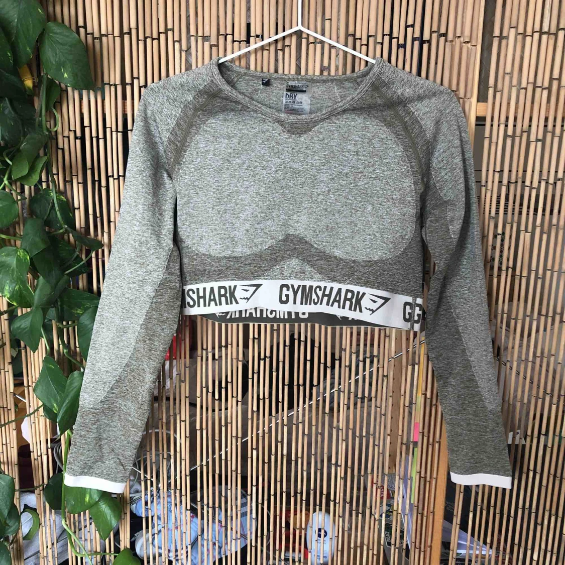 Grön/khaki färgad topp ifrn Gymshark. Aldrig använd. Jag är vanligtvis M men behövde L i denna. Eventuell frakt står köpare för. Kan annars mötas upp i Stockholm.