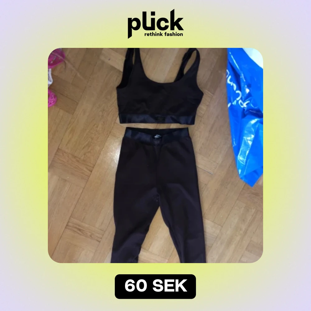 Färgen ser annorlunda ut på bilderna, jag skulle säga att dom är mörkbruna. Från Gina tricot byxorna i storlek M och toppen i storlek L. Axelbanden är uppsydda men ej avklippta så går att sprätta upp igen vid behov. Lite noppriga mellan benen