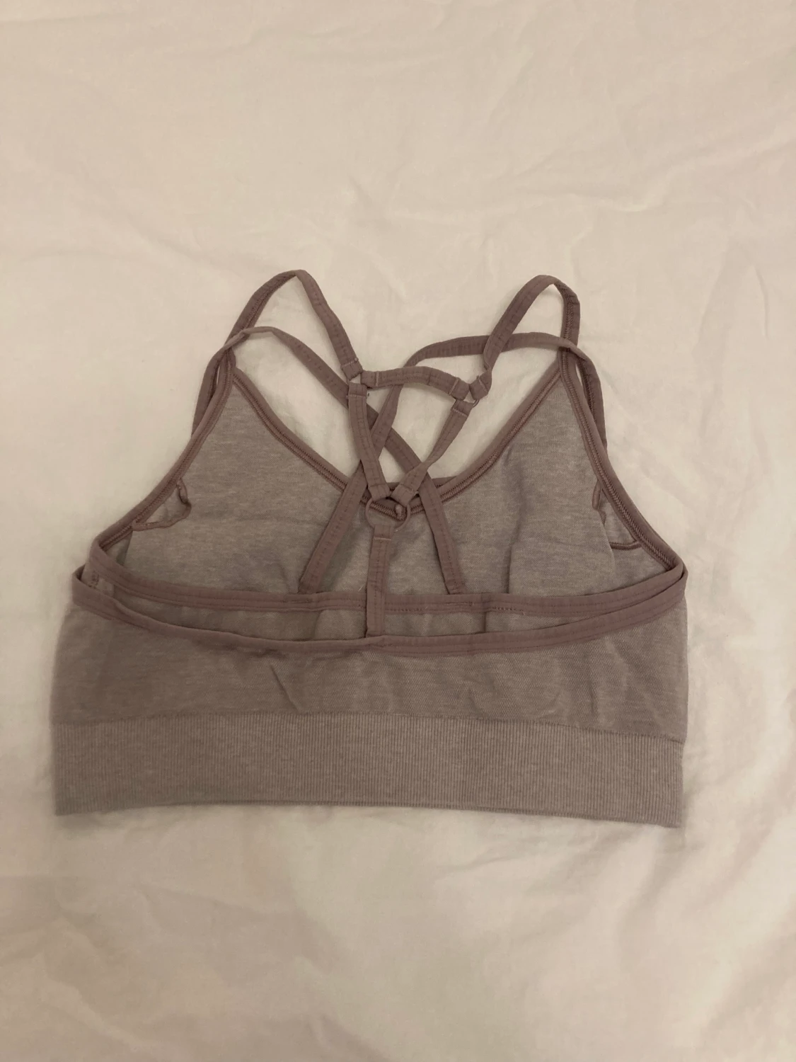 Sport-bh från gymshark, kollektionen ”adapt marl” i en dov lila-grå färg. Måttligt använd men syns lite på axelbanden att den har använts. Nypris 449kr