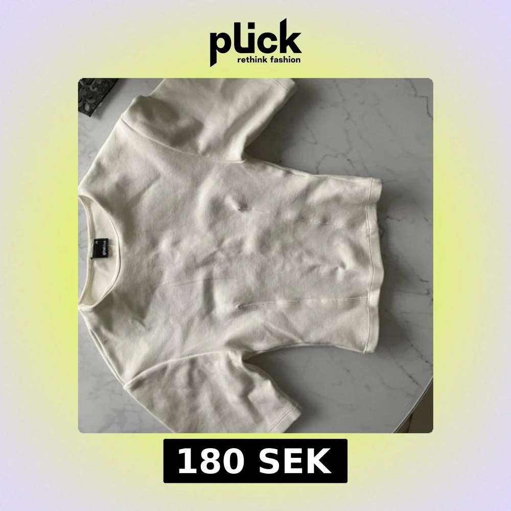 Säljer en stilren vit topp från Gina Tricot i storlek XS. Toppen har korta ärmar, rund halsringning och är tillverkad i ett mjukt bomullsmaterial. Enkel och clean design som passar perfekt till jeans eller kjol.