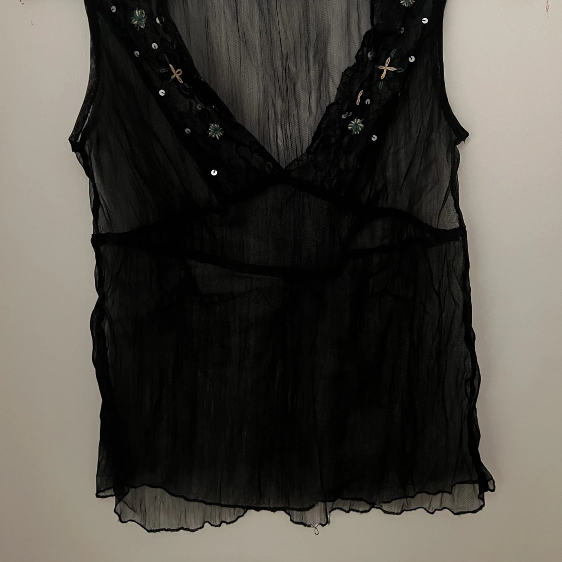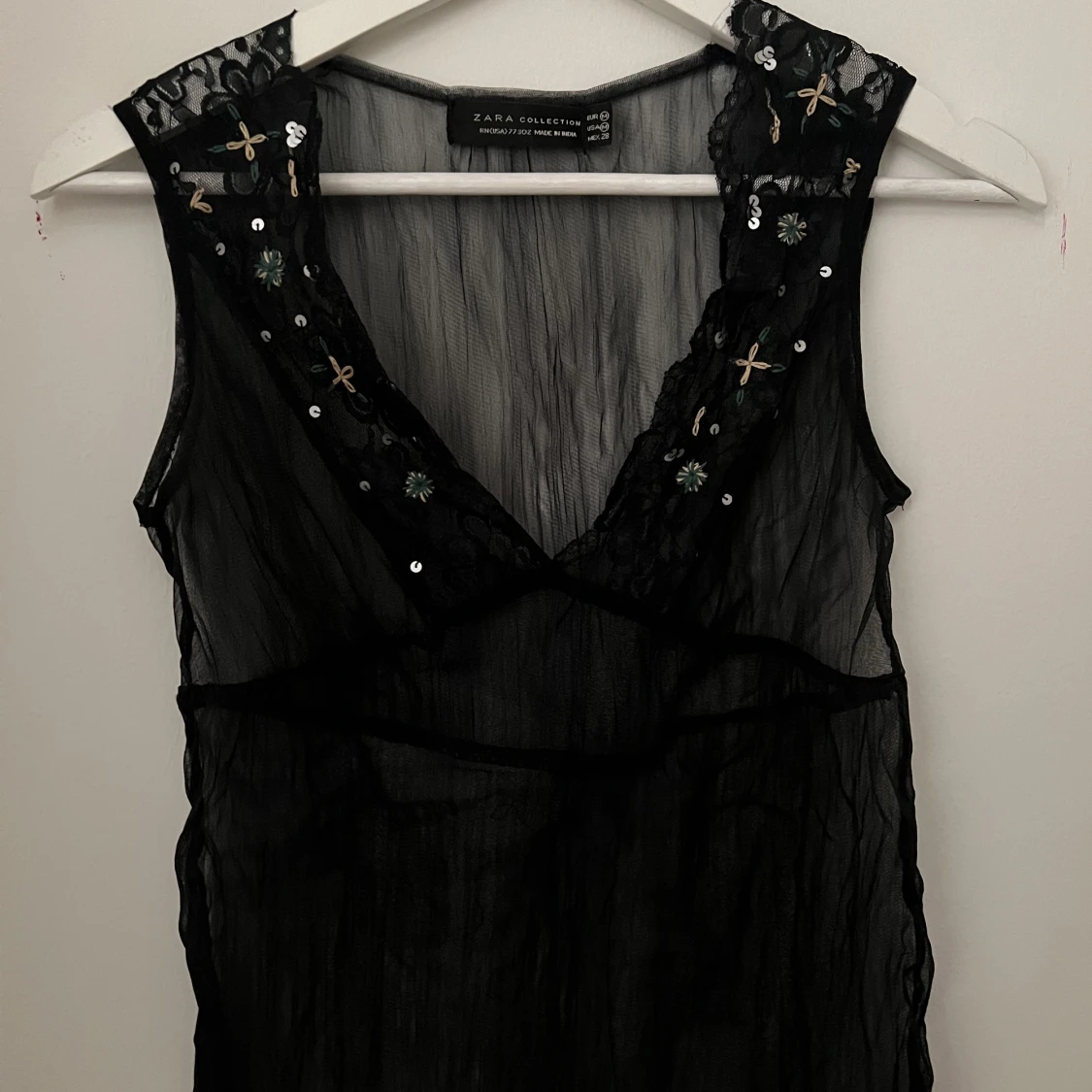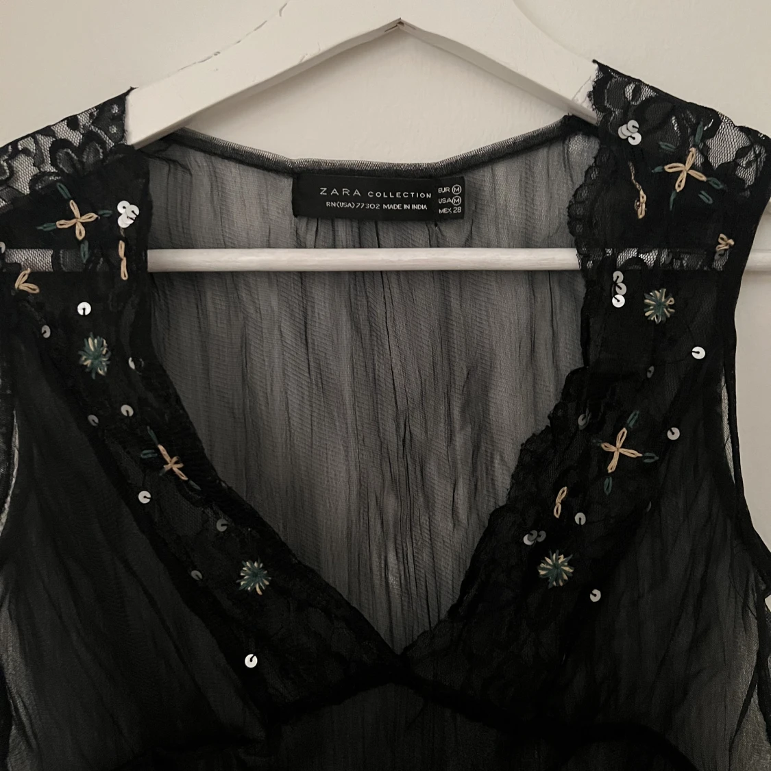 Säljer en vintage zara topp med broderier! Storlek M men liten i storleken. Tyget är genomskinligt!