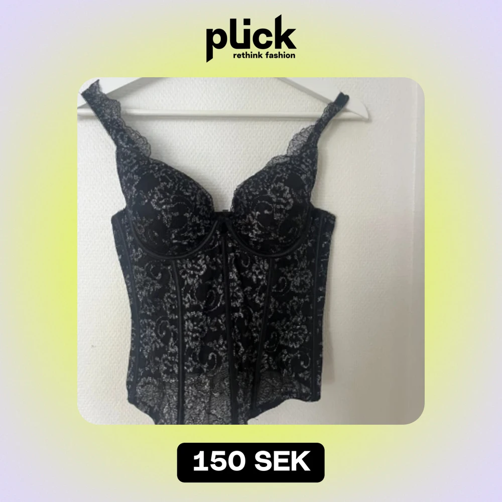 Säljer denna fina glittriga korsetten från Cubus. Svart med silvrigt glitter. Storlek 75B, skulle säga S/M ungefär. Endast använd 1 gång så fint skick. Passar perfekt på fest!