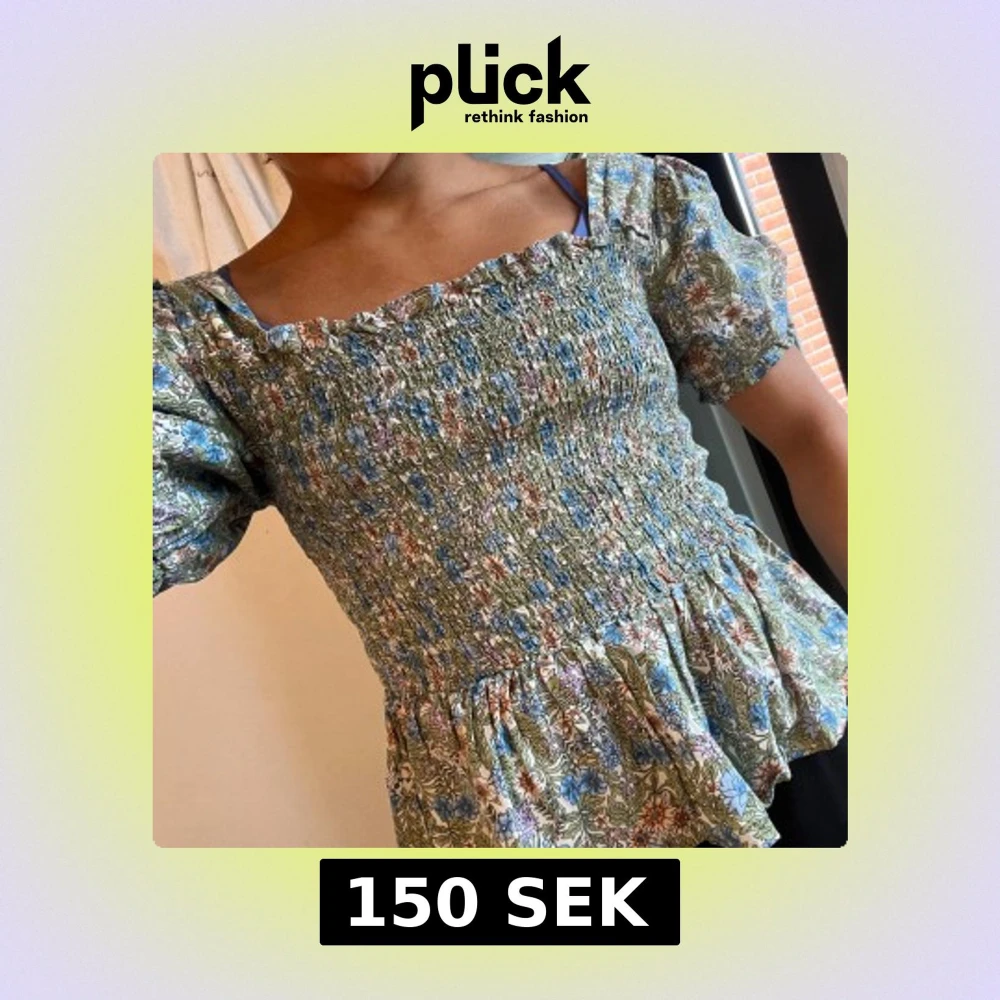 Supersöt blommig topp från MNG med smockad överdel, volang nertill och puffiga korta ärmar. Färgerna går i grönt, blått, vitt och orange. Perfekt för dig som gillar romantisk och somrig stil.