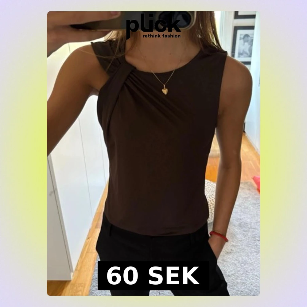 Brun topp med detaljer vid ena axeln