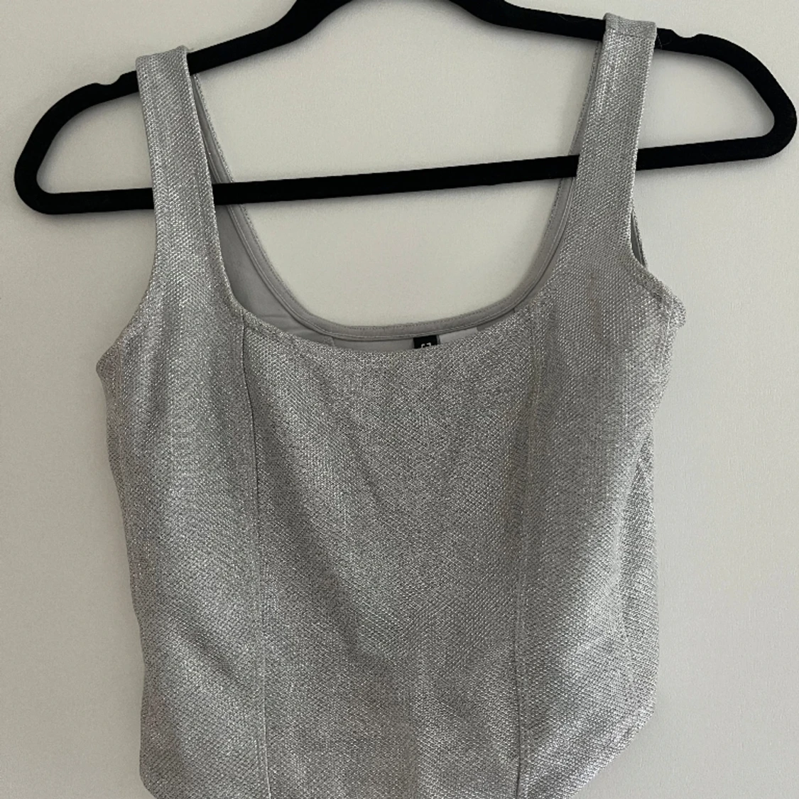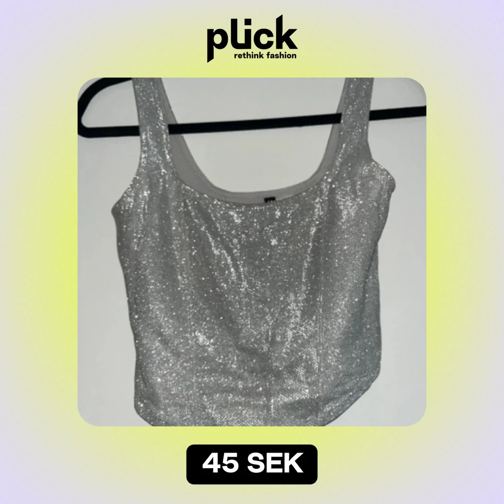 Supersöt glittrig topp ifrån hm. Aldrig använd Är normal i storleken men glittrar av sig lite Perfekt till fest