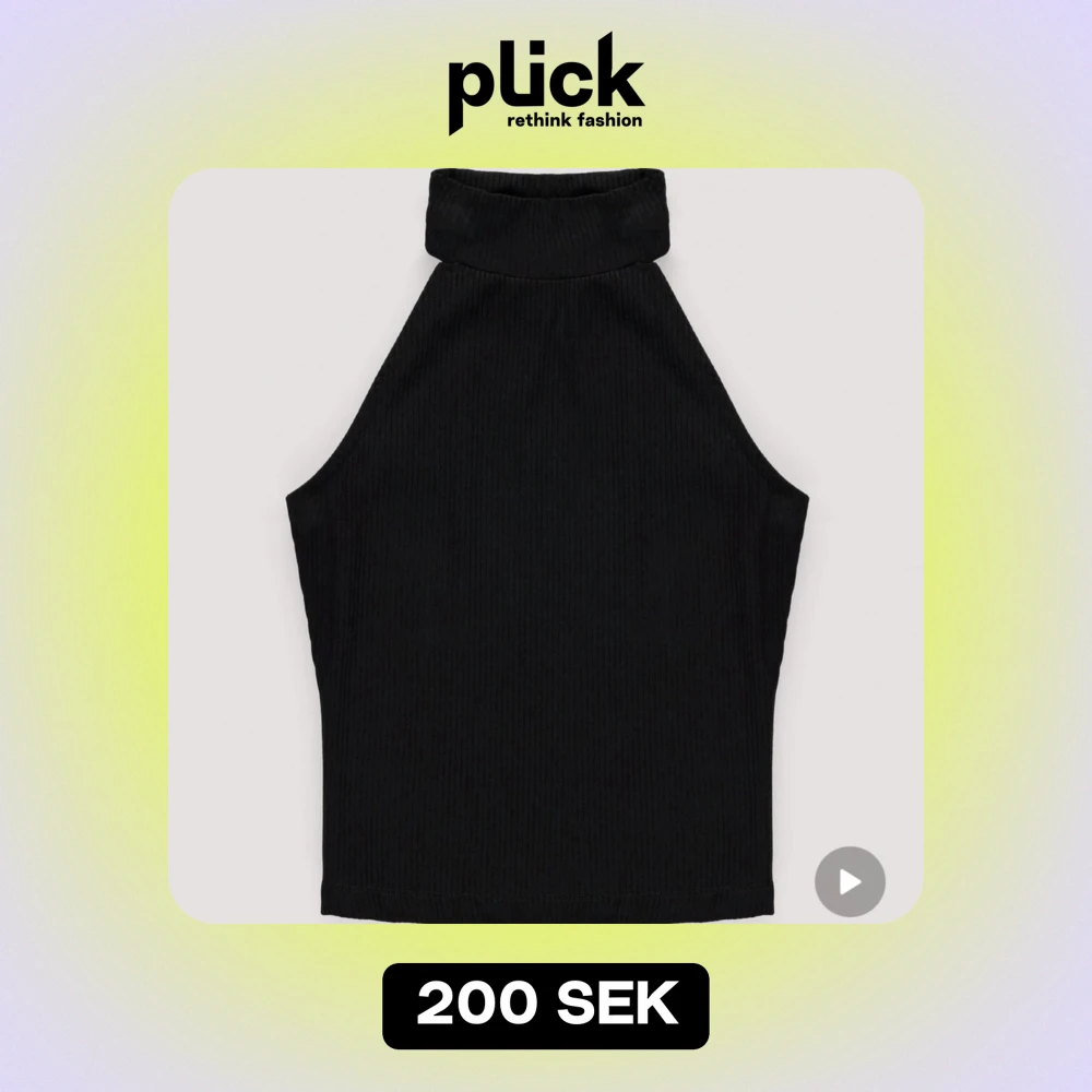 Säljer min svarta ribbade halterneck topp. Den är ärmlös och har en hög krage. Toppen är croppad och passar perfekt till de mesta.