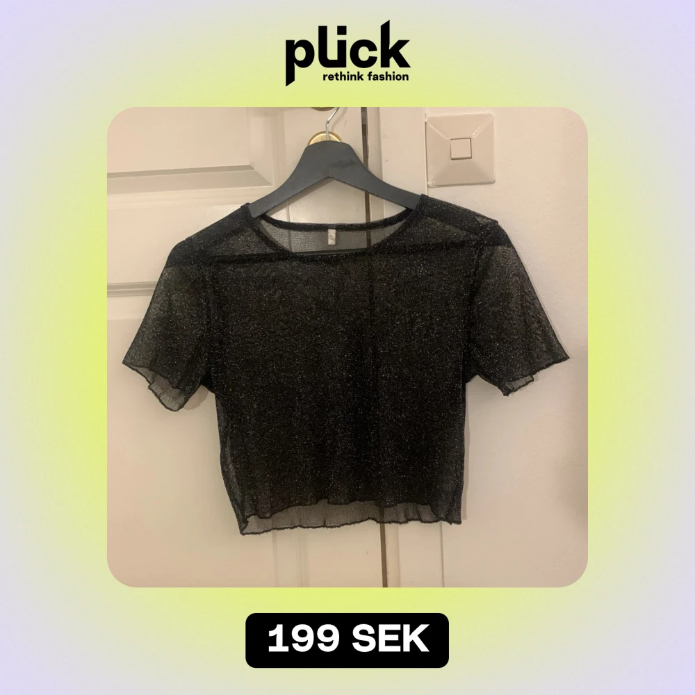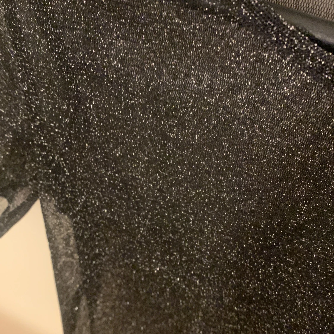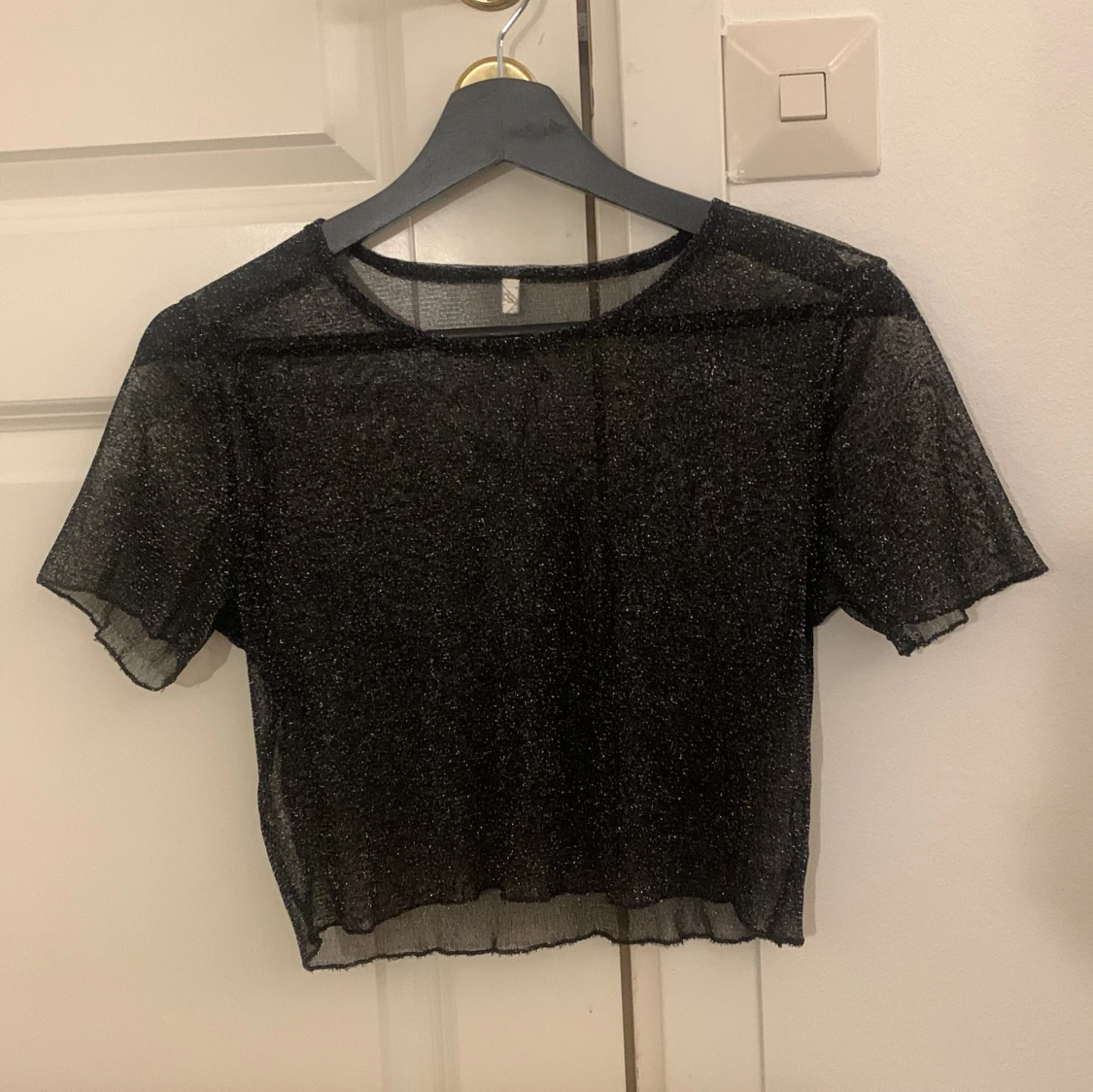 Säljer en superfin svart glittrig topp. Den är kortärmad och croppad, perfekt för festliga tillfällen. Passar perfekt över ett linne eller en bh.