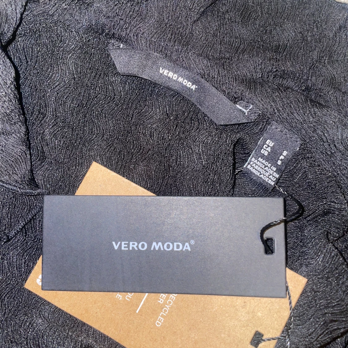 Supersnygg svart blus från Vero Moda med volangdetaljer längs halsringningen. Helt oanvänd med lapp kvar på!
