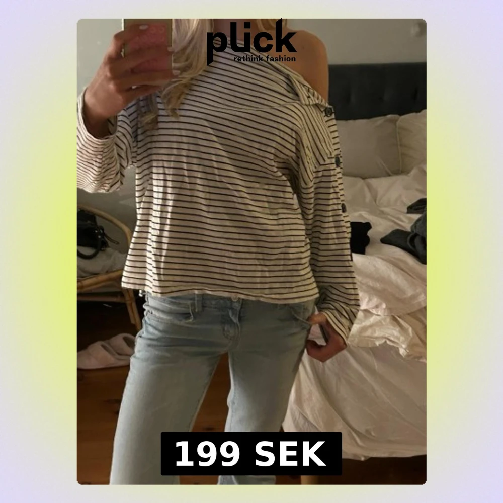 Randig tröja från Zara, off shoulder med knappar på ena sidan, storlek s💓💓
