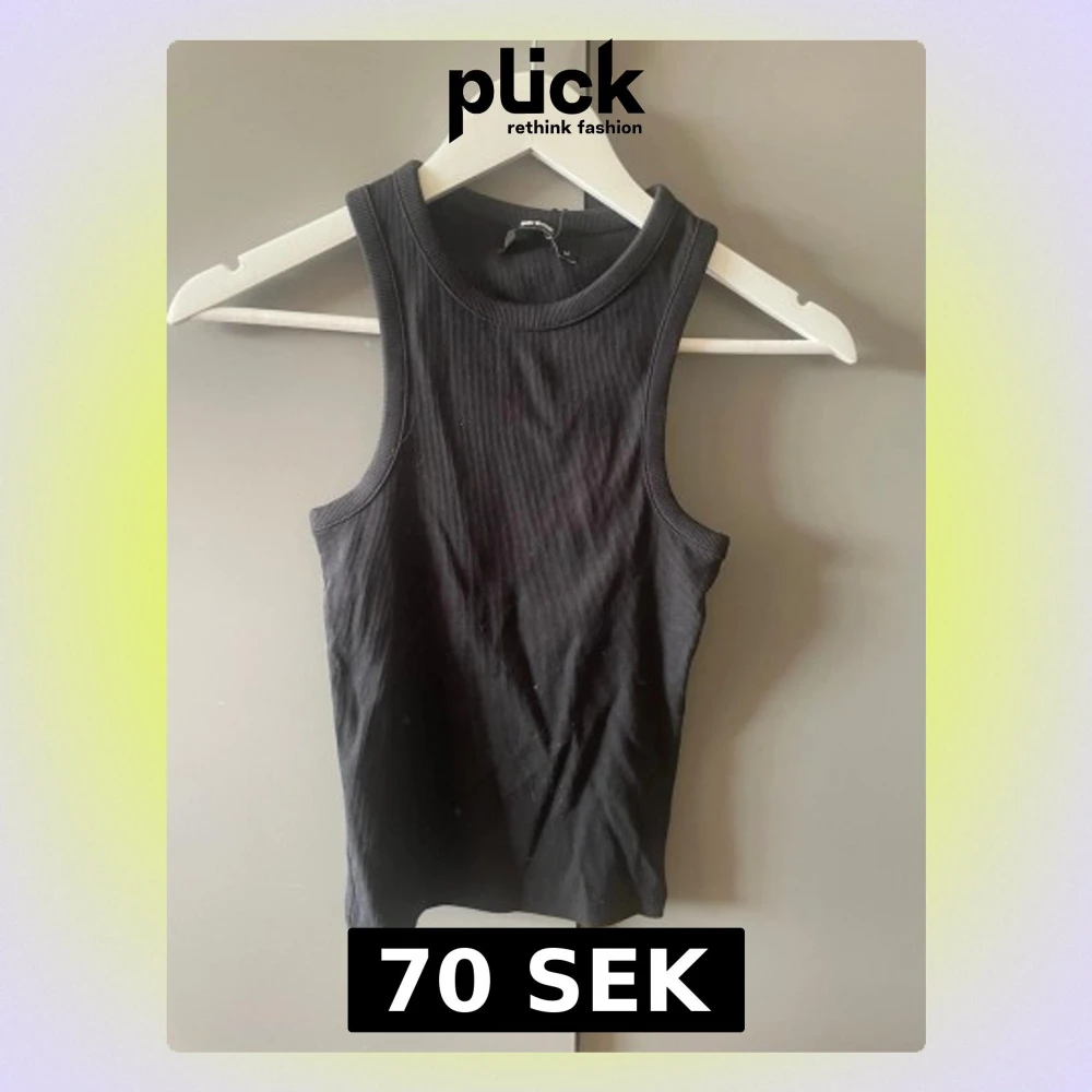 Snygg svart ribbad linnetopp från Bik Bok i storlek M. Toppen är ärmlös med rund halsringning och croppad passform. Perfekt att styla med jeans eller kjol för en trendig look.