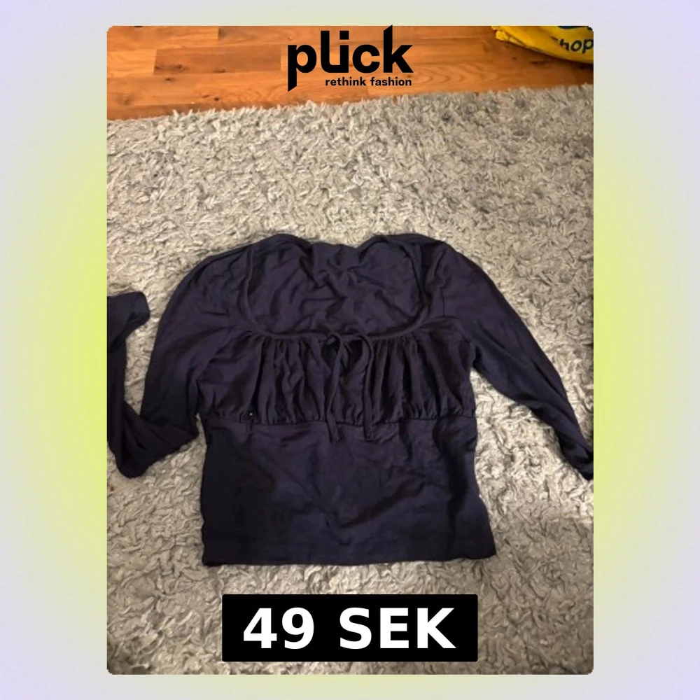Säljer en mörkblå långärmad topp med snygg snörning framtill och rynkade detaljer över bysten. Toppen har en rundad halsringning och är tillverkad i mjukt bomullsmaterial. Perfekt för dig som gillar en enkel men ändå trendig look.💙💙