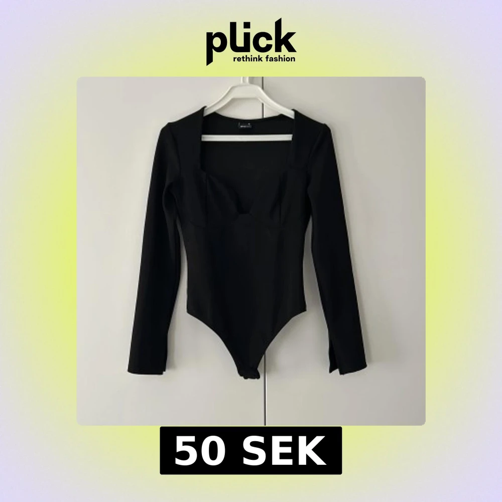Svart långärmad bodysuit från Gina Tricot i storlek XS. Toppen har en markerad byst, fyrkantig urringning och figurnära passform. Tillverkad i stretchigt material som sitter snyggt på kroppen. Perfekt att styla med jeans eller kjol.