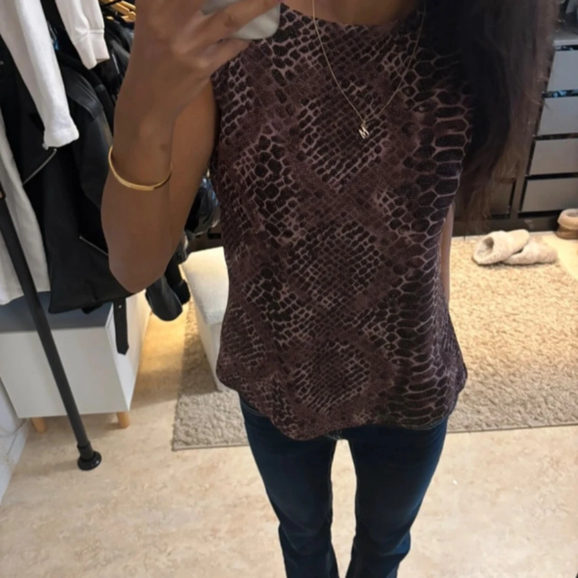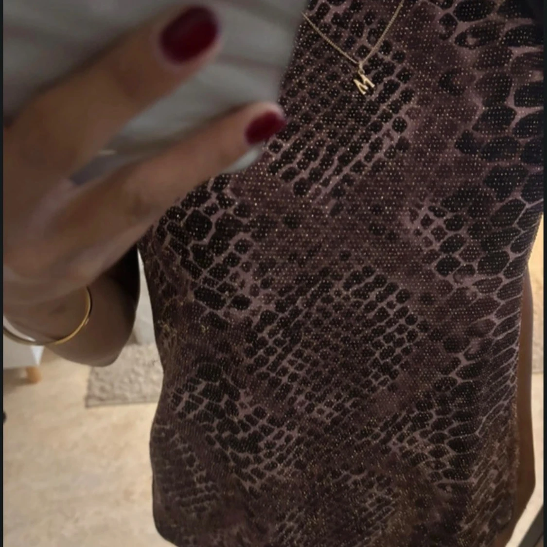 Snygg topp med ormskinnsliknande mönster med glitter! Från Kappahl. Snygg topp med ormskinnsliknande mönster OPS: storlek 42 men sitter som S