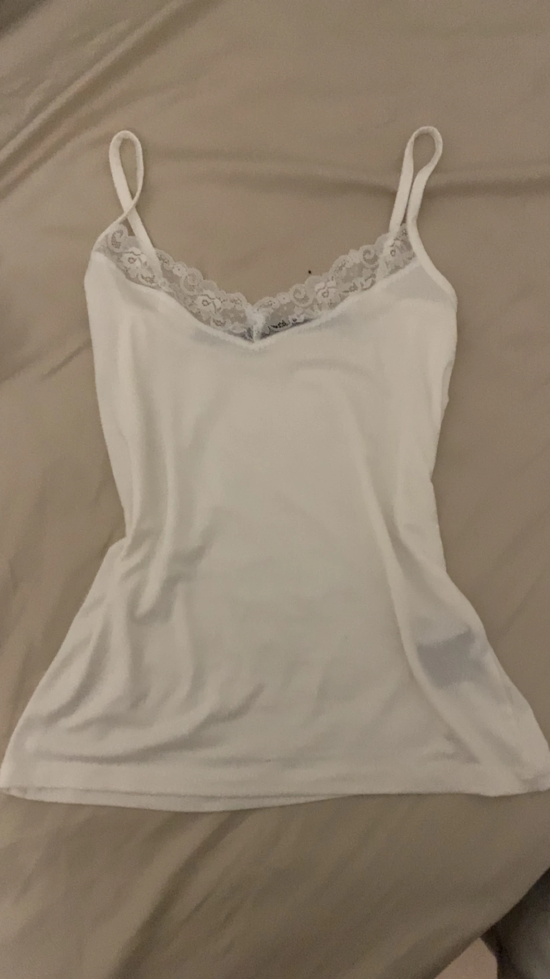 Helt oanvänd (inköpt idag) vitt stretchigt linne med jättefin spets