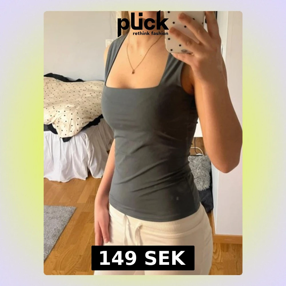 Snygg grön grå ish linnetopp med fyrkantig urringning och tight passform💕 Priset kan diskuteras!
