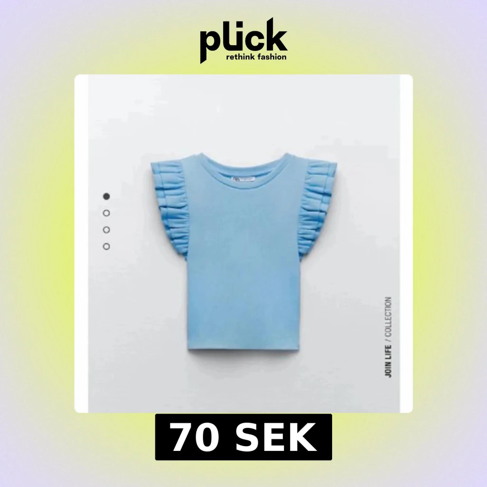 Snygg ljusblå topp från Zara med volangärmar. Storlek S, har en likadan fast svart, kolla annons💗