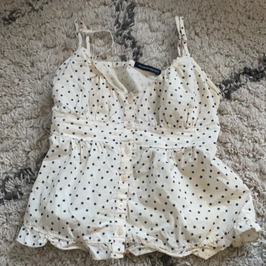 Säljer den här super söta Brandy Melville toppen i onesize (men man kan sjustera lite själv) passar xs-m. Nypris var 450 men kan tänka mig sälja för 150pris kan diskuteras!