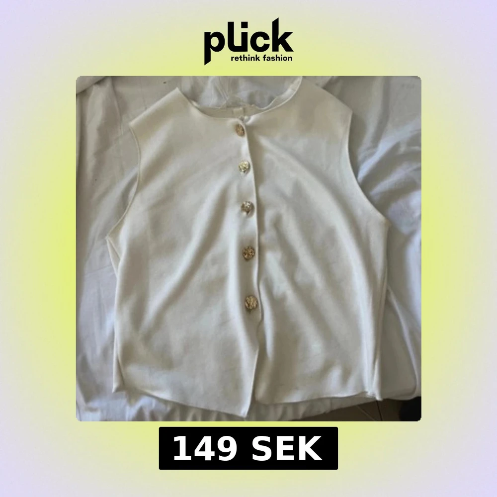 Vit topp med guldknappar i strl S från H&M. Använd en gång och är i mycket bra skick!