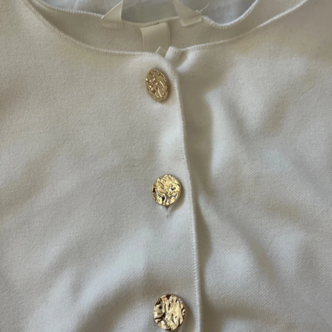 Vit topp med guldknappar