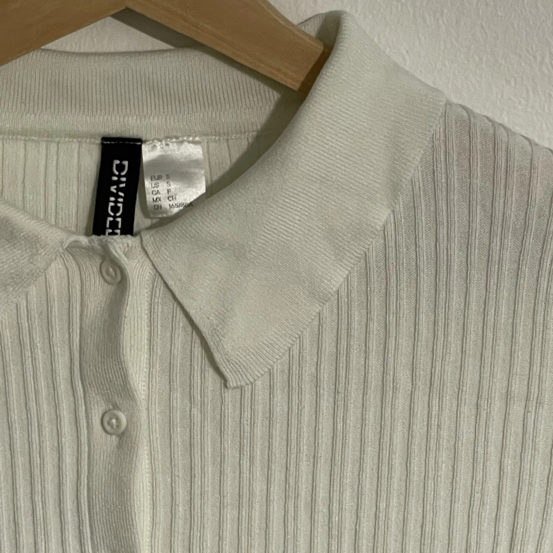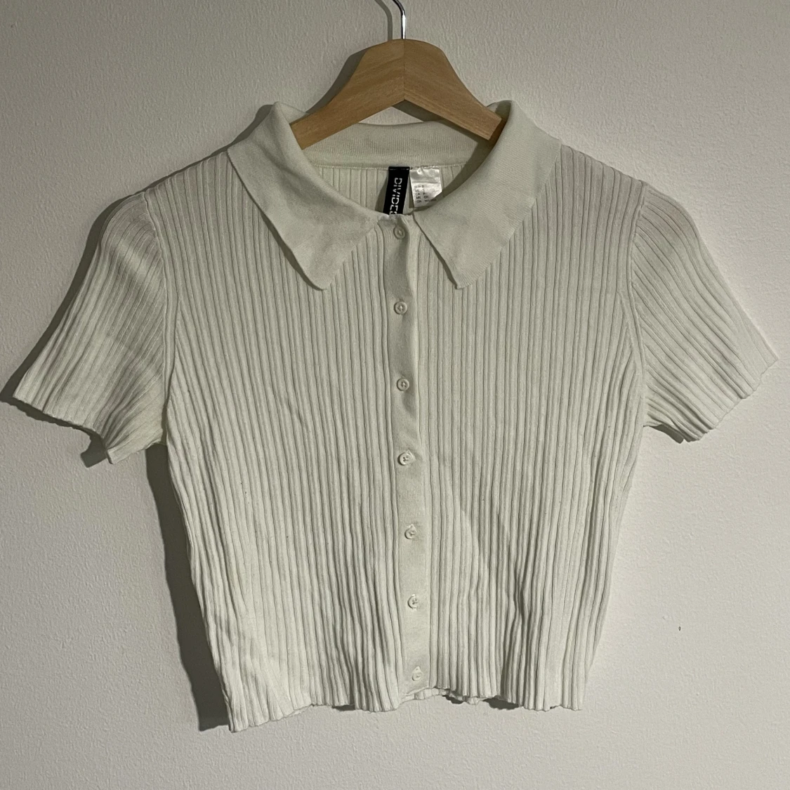 En fin ribbad croppad tröja med knappar✨ Använd. Fint skick! ⭐️ Modellen har storlek S och bh storlek 75C. Passar även för bh D.