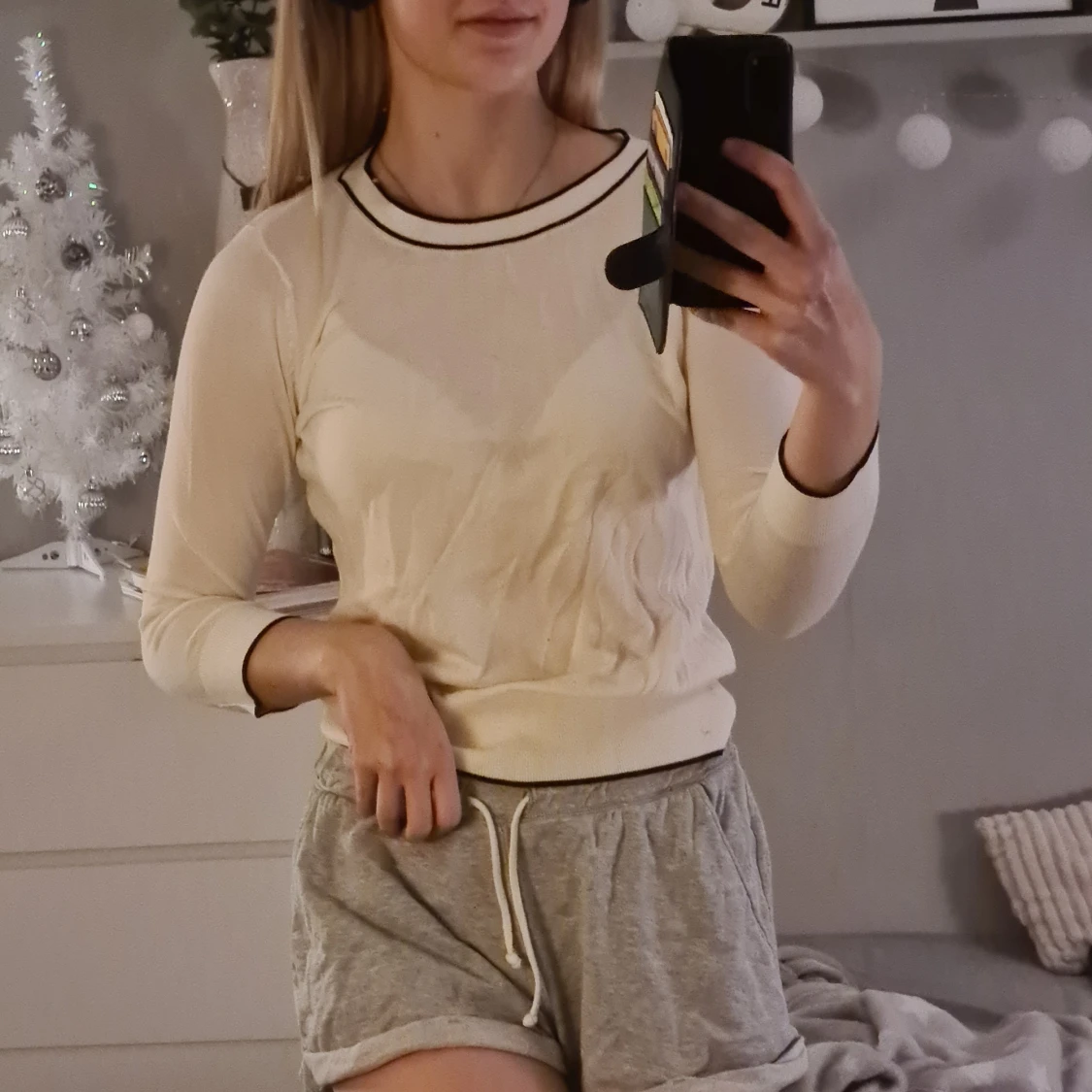 En vit tröja med svarta ränder. Köpt från hm för länge sen men aldrig använd. Är storlek S men lite stor i modellen💕