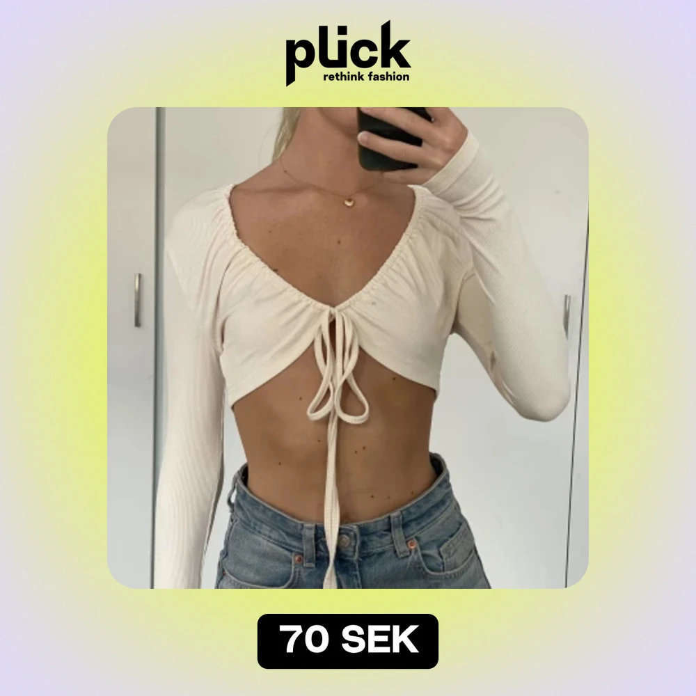 Beige / ljusrosa / kräm färgad långärmad tröja. Cropped med två band man kan knyta på olika sätt enligt bilderna. Oanvänd