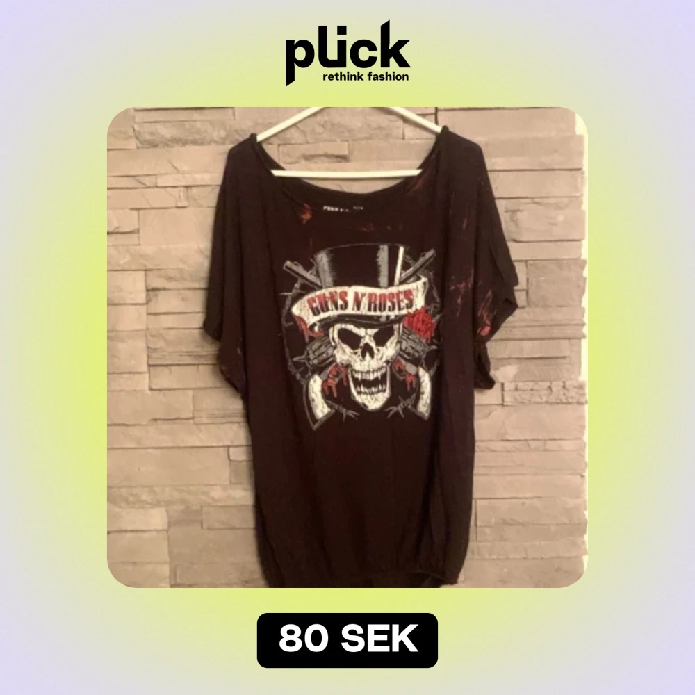 Super fin Guns’n roses tröja i super stretchigt material. Den ska vara som en oversize tröja. Kan användas som klänning om du är kort.